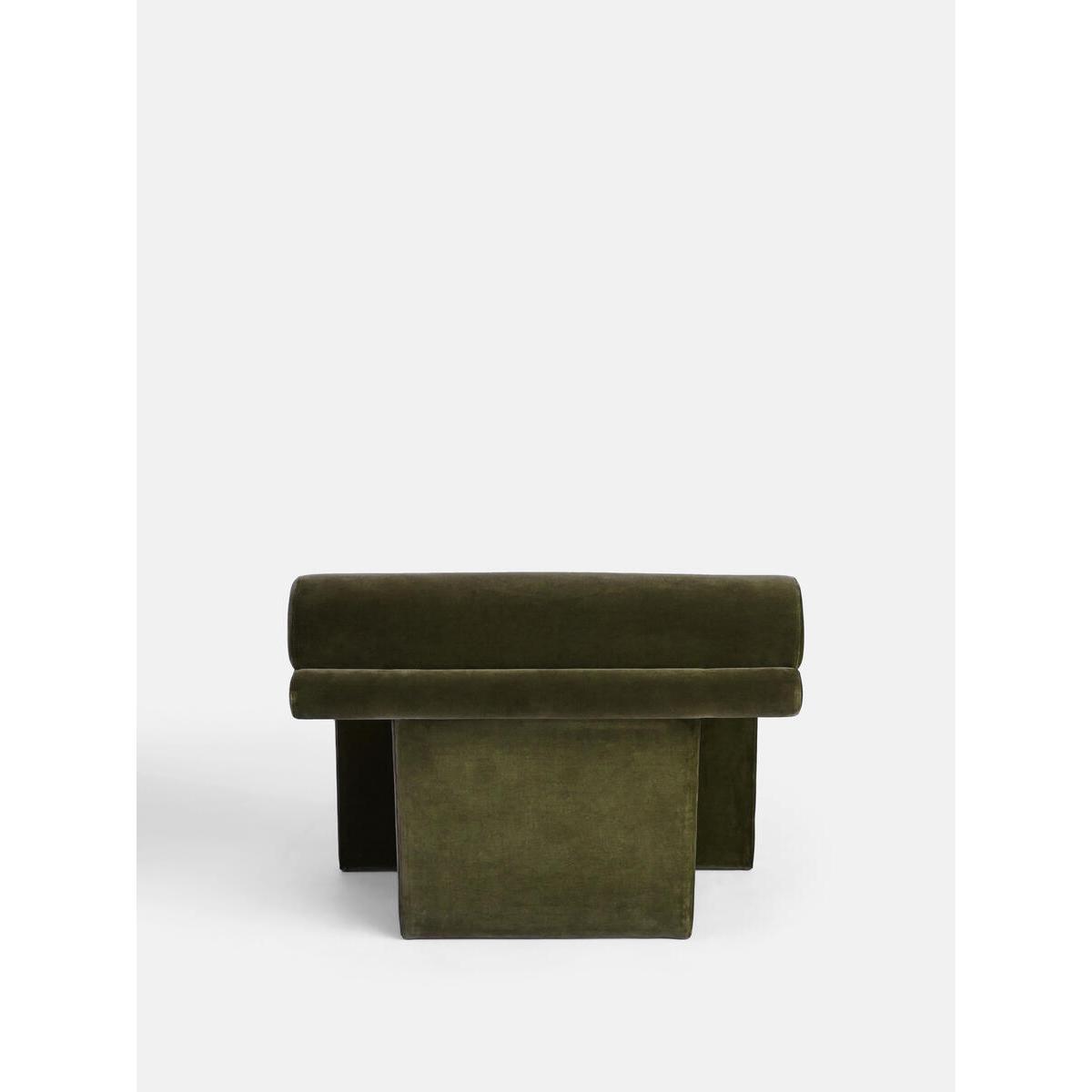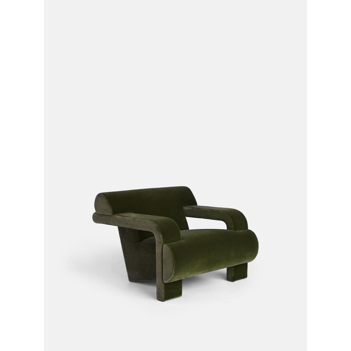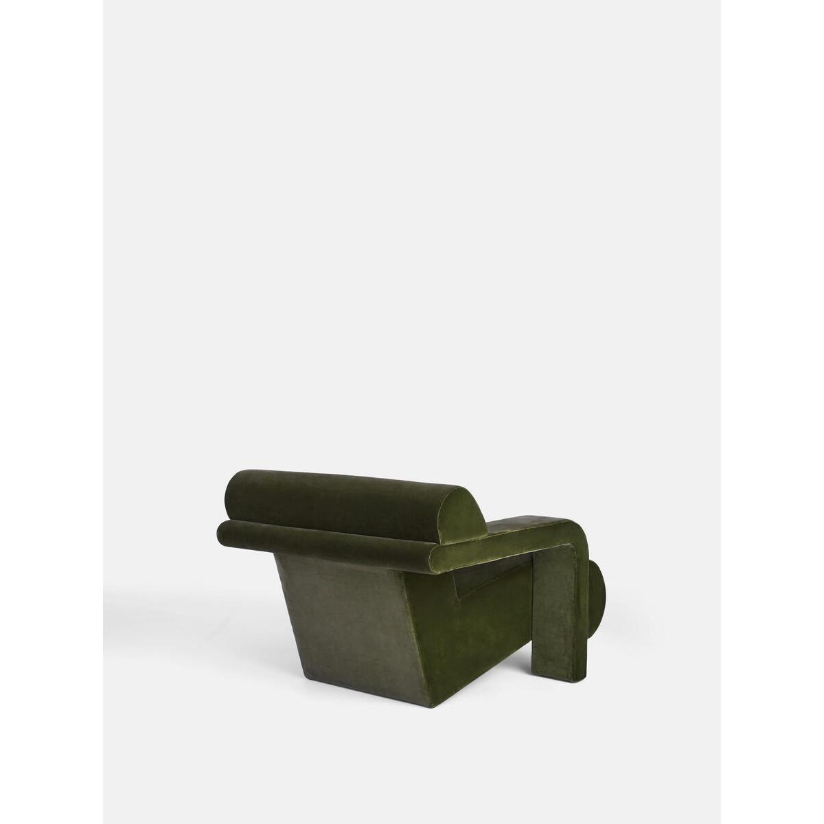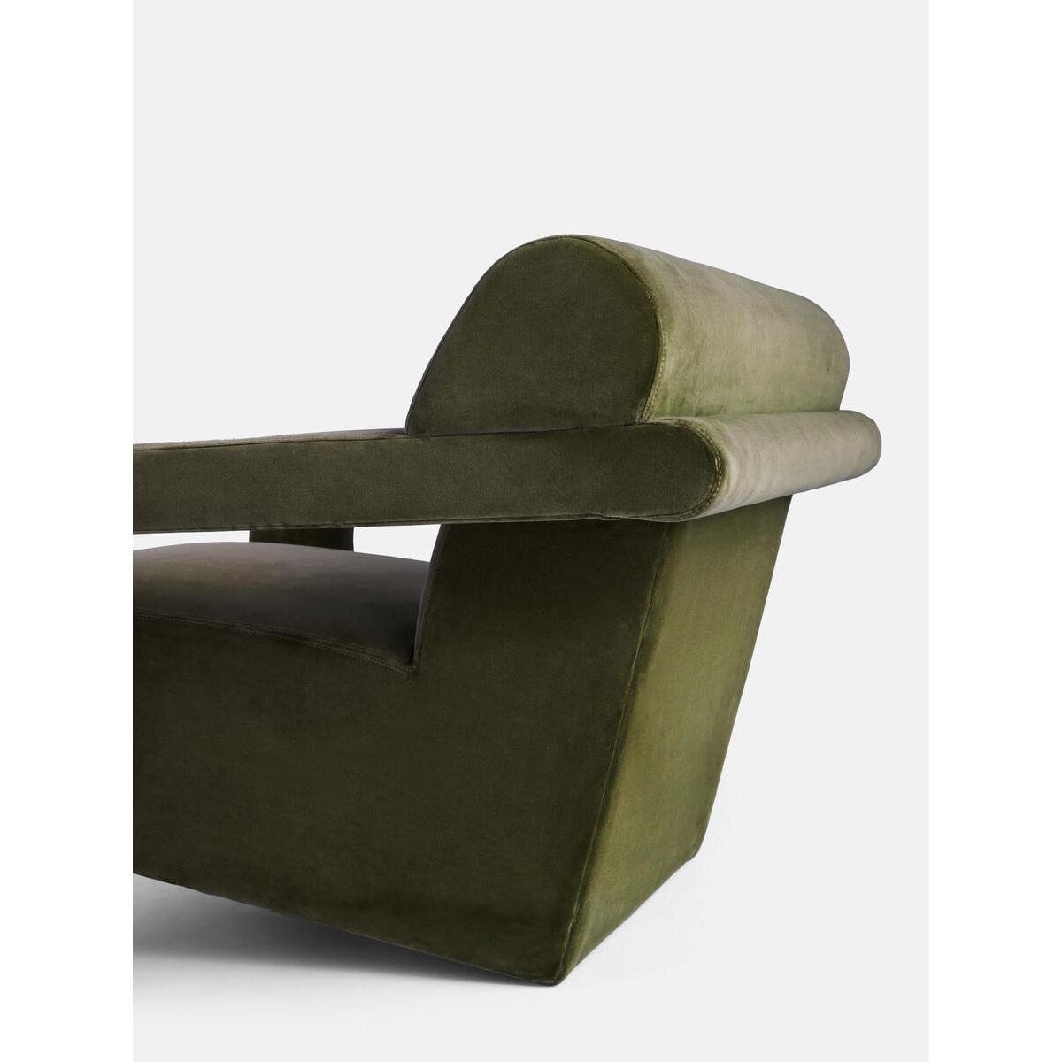The sculptural formation of our Humphrey armchair is designed to create a stand-alone statement in your living space, while echoing the interiors of Soho House Rome. Upholstered in olive green velvet, place in a corner of the living room and sink into its undulating curves. Statement armchair Sculptural formation Upholstered in olive cotton velvet Inspired by Soho House Rome