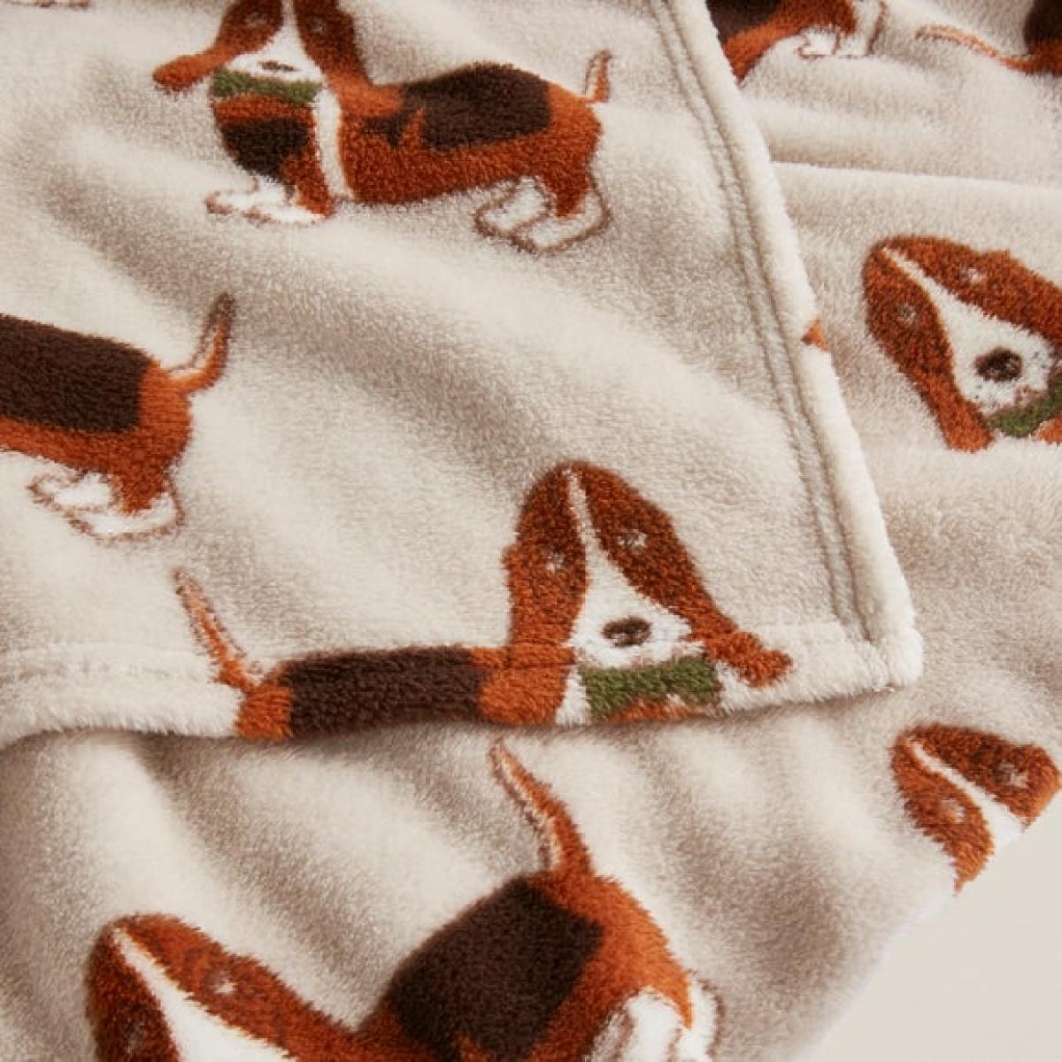 * Adorable Basset Hound design * Soft fleece fabric * Machine washable * Made from 100% recycled polyester Bring some canine cuteness to your living space with our Basset Hound Fleece Throw. This delightful throw, featuring an adorable Basset Hound design, is made from a super soft fleece fabric, perfect for cosy evenings. Made from 100% recycled polyester and machine washable, it's a perfect blend of charm and practicality.
