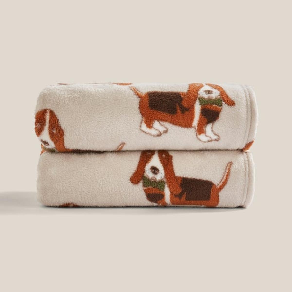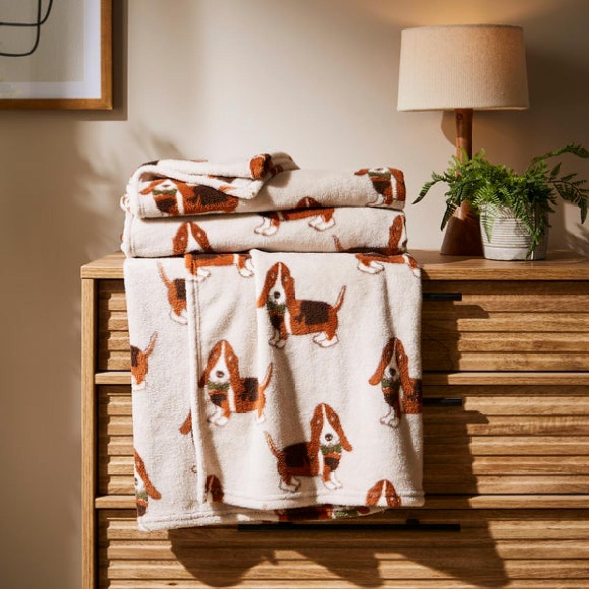 I love the Humphrey the Basset Hound throw for its charming and playful design, which adds a cosy and inviting touch to any room. It works particularly well in casual, family-oriented interiors, such as living rooms with rustic or eclectic styles, or nurseries where a fun, animal-themed accent is welcome. Practical styling tips include draping it over a sofa or armchair to instantly add colour and personality, or folding it neatly on a bed as a decorative yet functional throw. Its soft, plush texture makes it an excellent choice for snuggling up on chilly days, and its lighthearted design keeps the room feeling warm and welcoming.