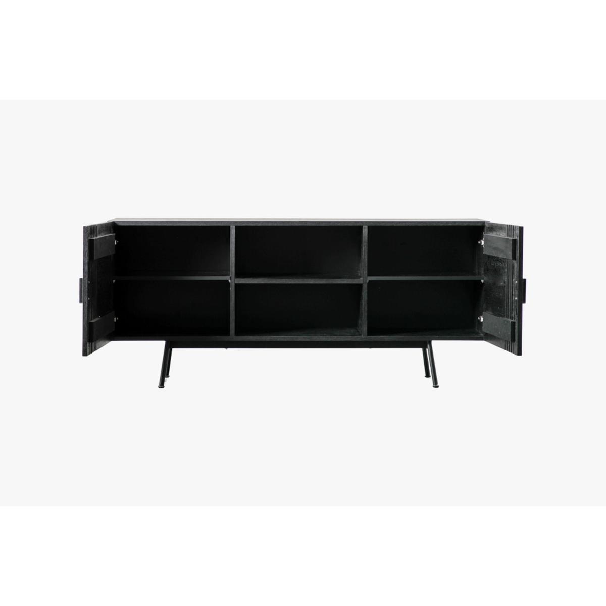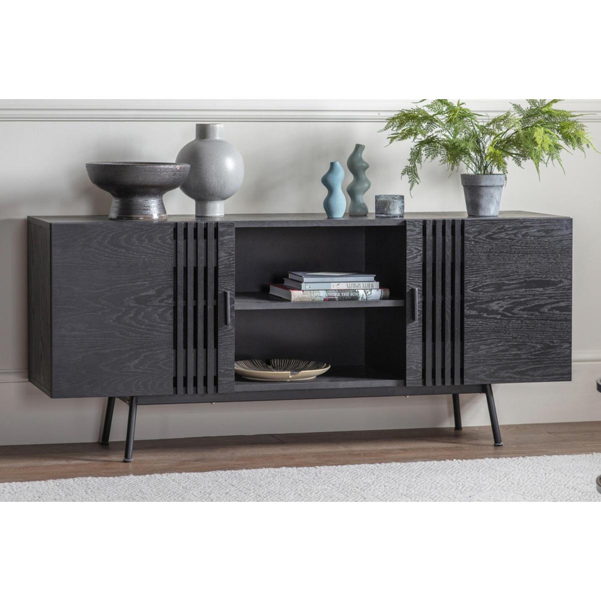 I’m a fan of this black sideboard for its clean lines and subtle ribbed detail, which give it presence without dominating a room. It’s equally at home in a pared-back Scandi scheme, an industrial loft or a more eclectic space where you want a strong, grounding piece. Styling-wise, keep the top tidy - a low vase or sculptural bowl plus a couple of art books is enough. Inside, use baskets or neat boxes to conceal clutter, and balance the dark finish with lighter textiles or metallic accents elsewhere in the room.