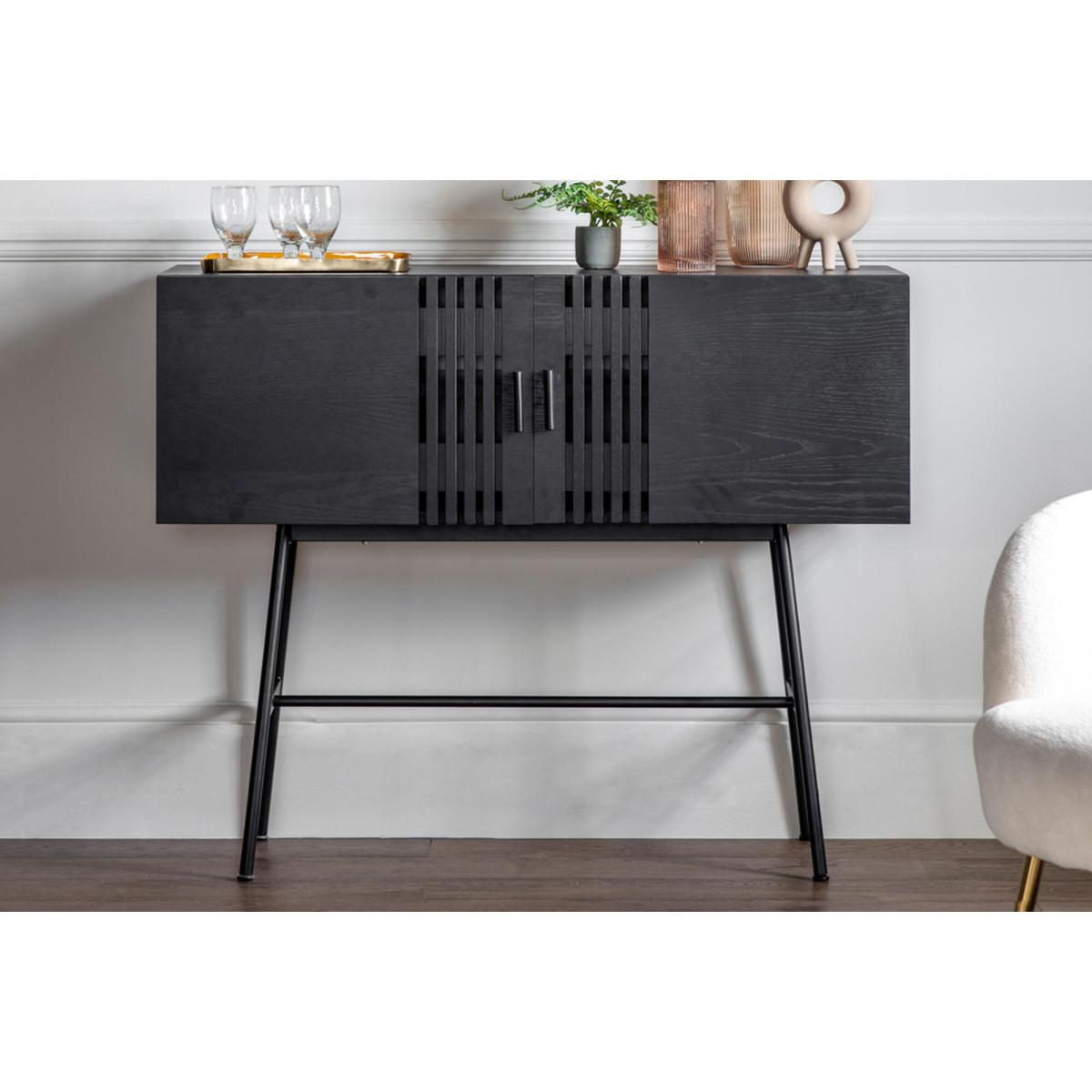 I’m a fan of this black two-door sideboard for its clean lines and subtle slatted detailing, which add texture without overwhelming a room. It suits modern, Scandi or industrial interiors equally well and works as a media unit in your living room or as a hallway console. Practically, its raised metal legs keep the floor clear and make cleaning easy, while the cupboard space hides away clutter. For styling, try pairing it with a matte ceramic lamp, a small indoor plant for a pop of green and a stack of design books to balance the height.