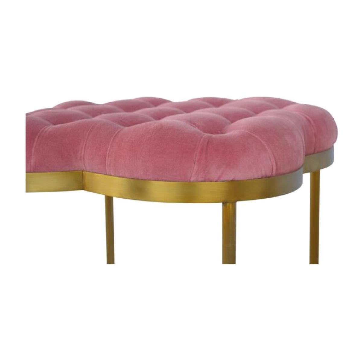 Add this luxurious footstool to any room of the home, clover-shaped and upholstered in a beautiful pink velvet fabric it features a beautiful deep button design throughout giving the piece timeless elegance and allows it to fit into any type of interior as an accent piece. The base has been constructed from a golden base with a criss-cross design for added definition and allows you to rest your feet. Solid Wood Structure Stainless Steel Crafted By Hand.