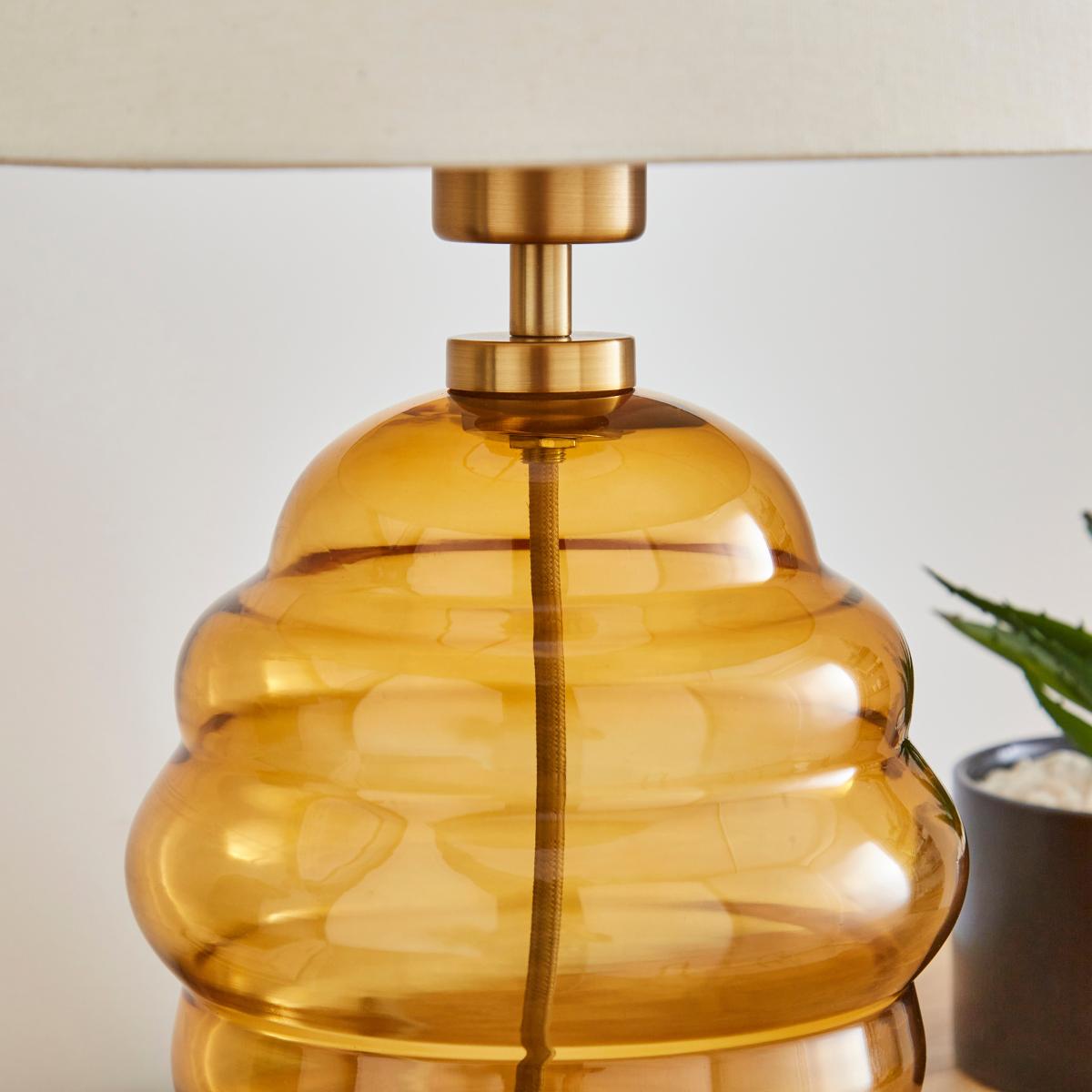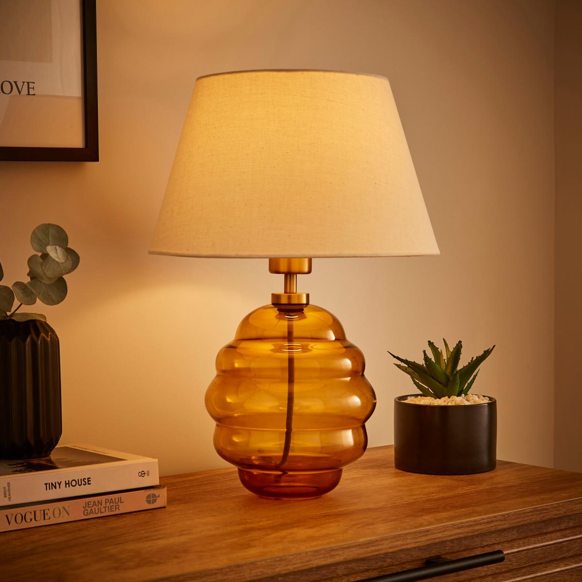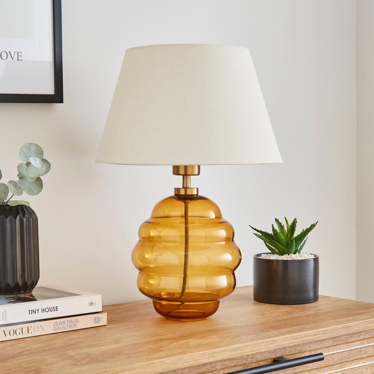 I love this amber glass table lamp for its warm, inviting glow and its versatile retro-inspired design. It works particularly well in contemporary or eclectic interiors, adding a pop of colour without overpowering the space. Practical styling tips include pairing it with neutral tones to let the amber hue stand out, or layering it alongside other textured accessories for a curated look. It’s perfect on sideboards, bedside tables, or console tables, and can be easily styled with plants, books, or minimalist art to create a cosy yet sophisticated area.