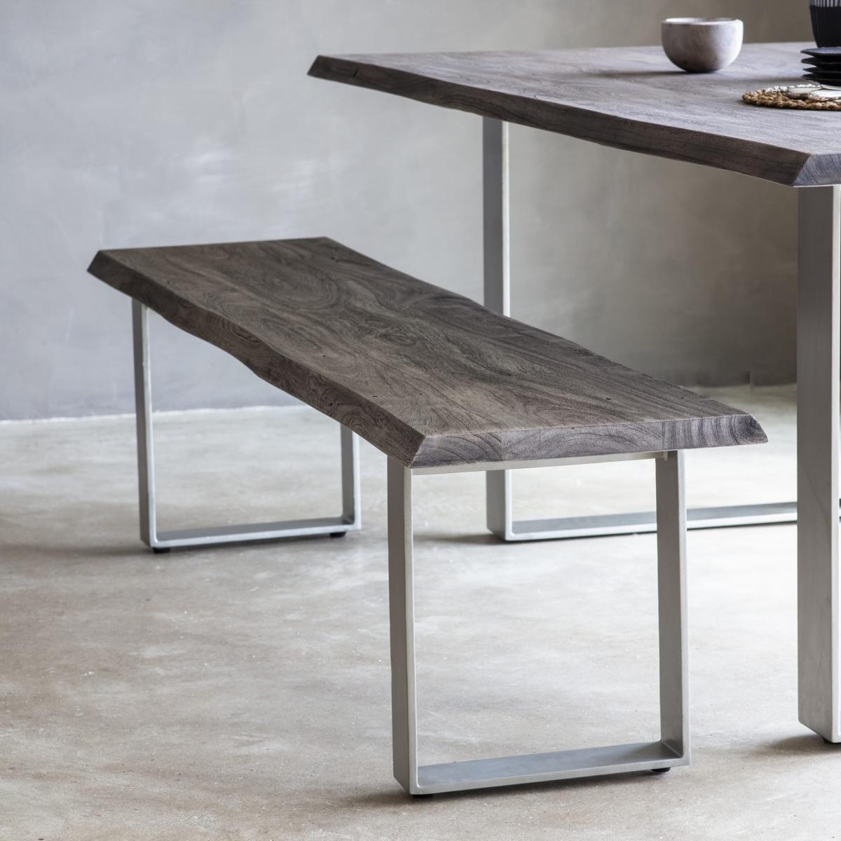 A modern twist on a timeless look. This range is a beautiful addition to your living space. Made with a solid Acacia wood top featuring a beautiful and unique waney edge and finished with silver powder coated iron legs.