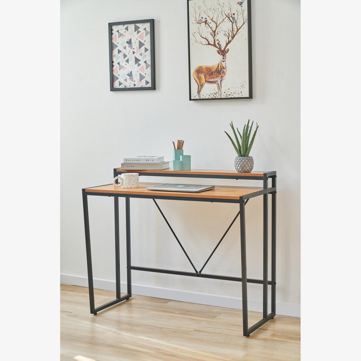 Make working from home more comfortable with the Hunter Office Desk. Crafted from PB board, it's designed with two tiers to provide you with ample storage space to keep all your essentials nearby. This desk features a tabletop that's perfect for placing your monitor, laptop, or lamp on and is fitted with steel legs for stability. With an eye-catching compact design, it's a perfect addition to any modern and industrial home.