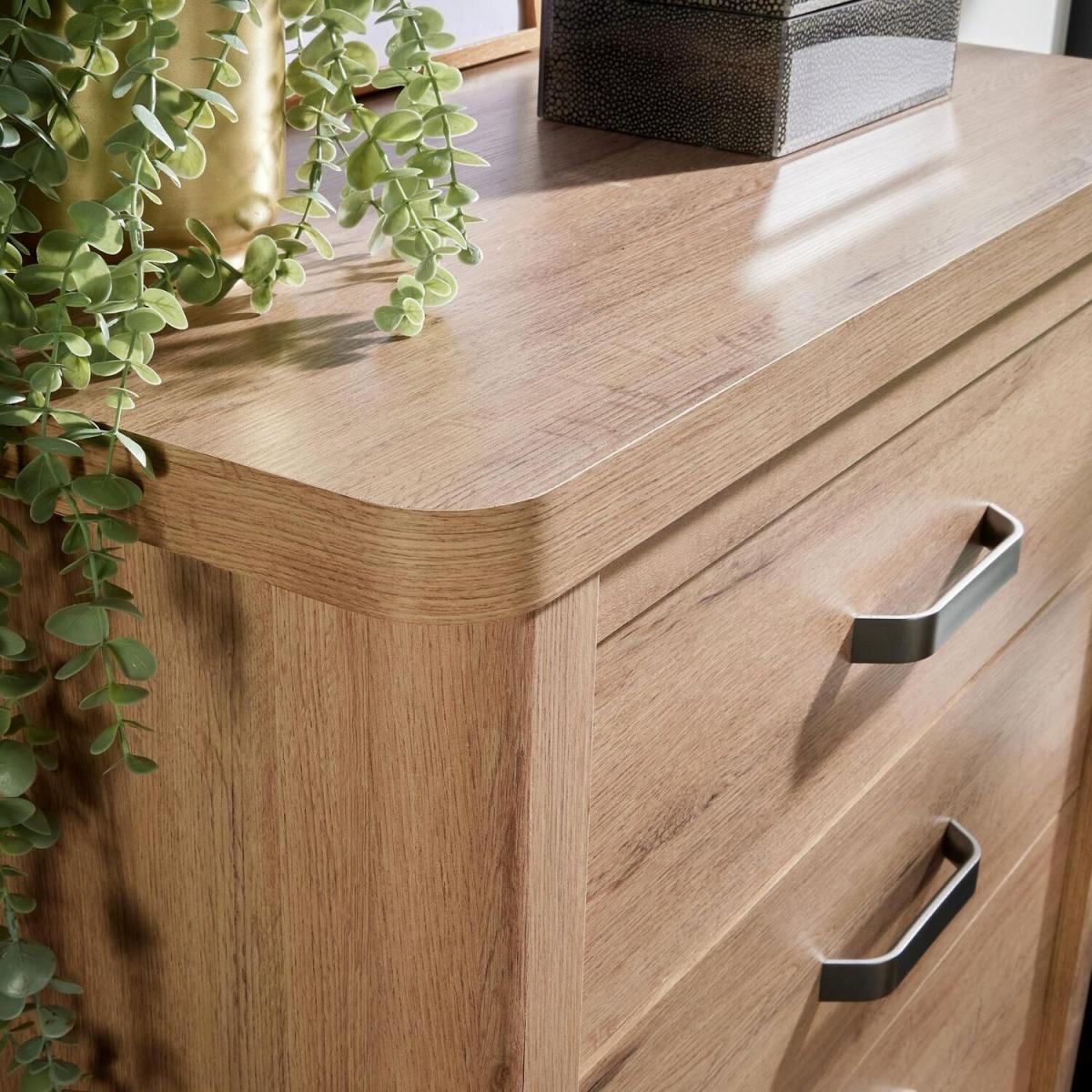 The Huntingdon 5 Drawer Chest is a versatile and practical piece that works well in both traditional and modern interiors, thanks to its natural wood finish which adds warmth and texture to any space. I love how its clean lines and understated hardware make it suitable for a variety of styles, from minimalist to Scandi-inspired settings. It’s perfect for bedrooms or even hallways, offering ample storage without feeling bulky. To style it effectively, consider pairing it with neutral or muted colour schemes, and add organic touches such as potted plants or textured textiles to enhance its natural look. It’s a great choice for those seeking a functional yet visually appealing storage solution.