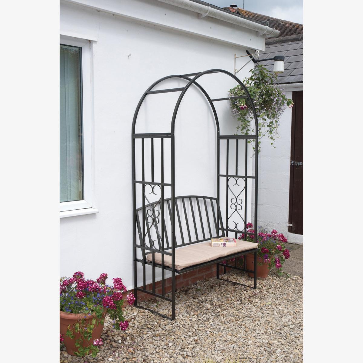 Create a fabulous seating area in your garden with the Huntingdon Arch and Bench with Cushion. Whatever the weather this beautiful arched bench will look stunning in your garden, complete with a comfortable PU coated cushion. Please note, unfortunately we cannot deliver this item to the Channel Islands.