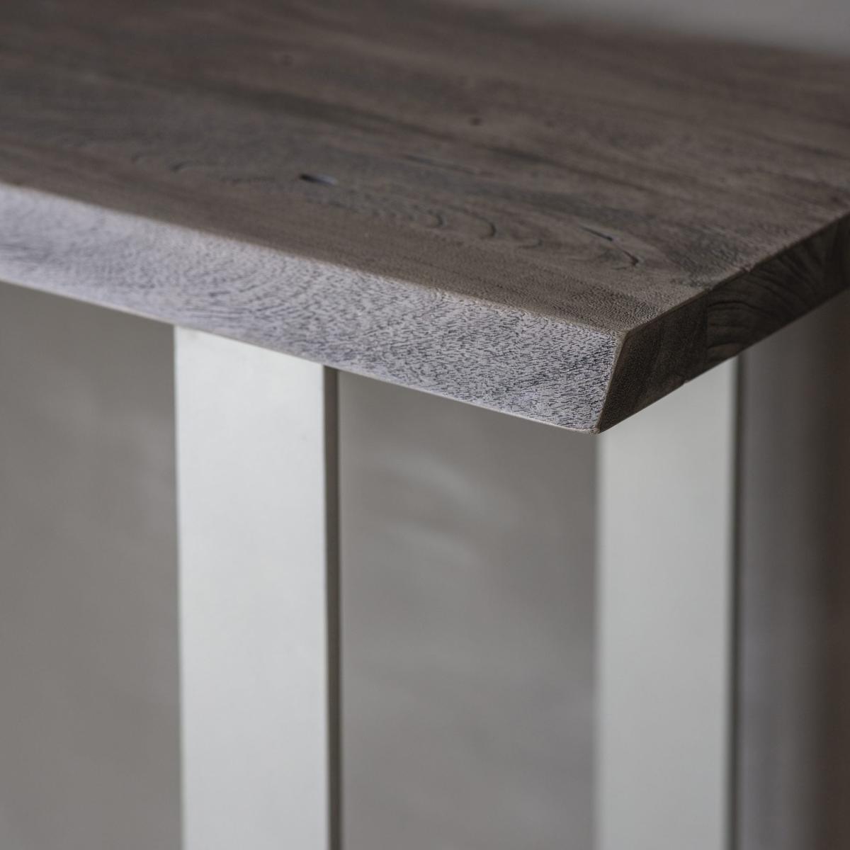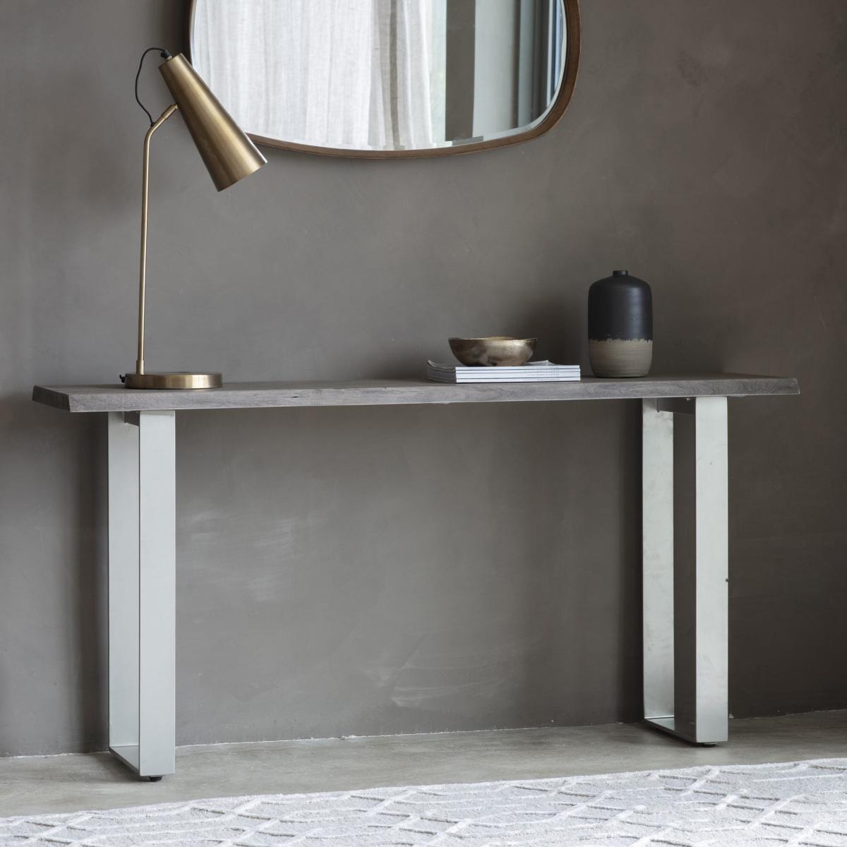 A modern twist on a timeless look. This range is a beautiful addition to your living space. Made with a solid Acacia wood top featuring a beautiful and unique waney edge and finished with silver poder coated iron legs.
