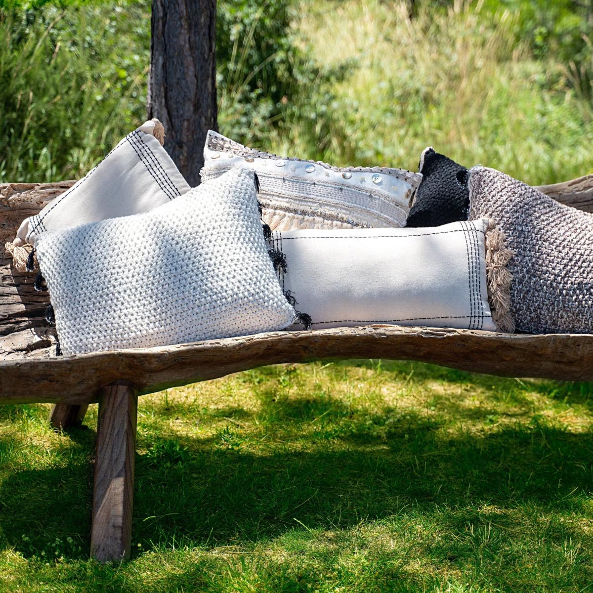 A simple woven cushion cover, with mini tassel details - looks great paired with our Hecate - Melanie cushions for a bohemian vibe.