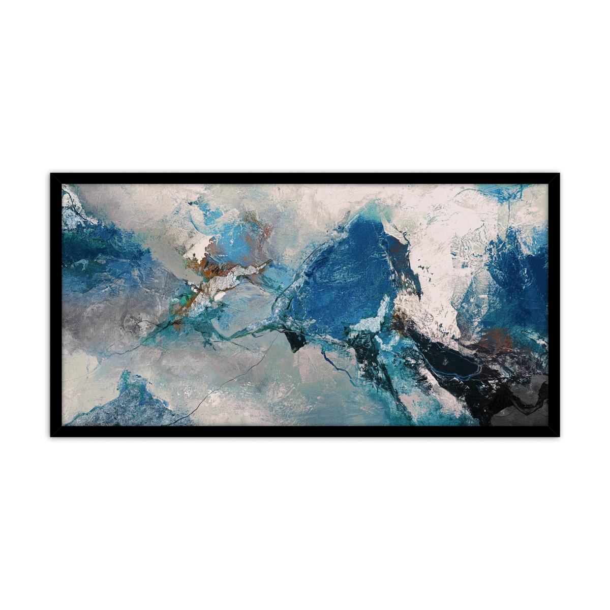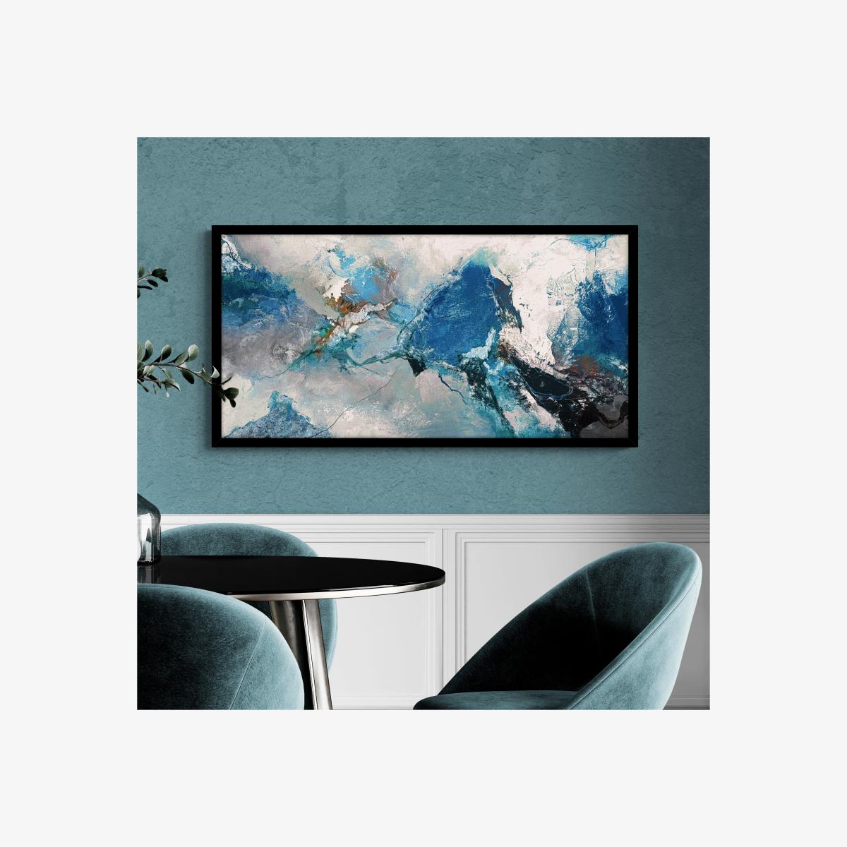 * Black frame* Abstract print* Large statement piece* Textured finish Make a statement with this large abstract print by Design Fabrikken. Featuring blue tones, a textured finish and a black frame, it’s ready to hang anywhere in your home using the D ring wall hanging points.