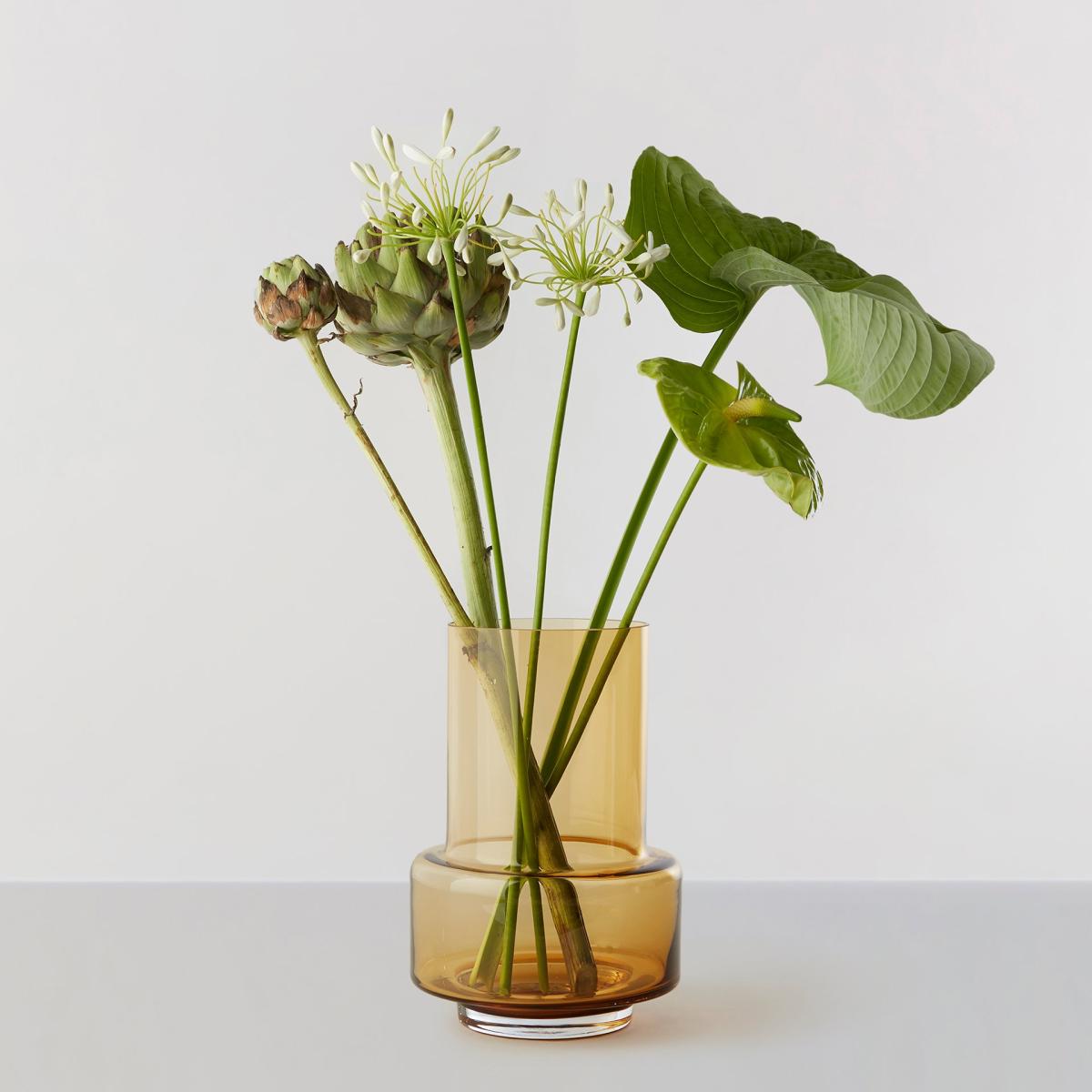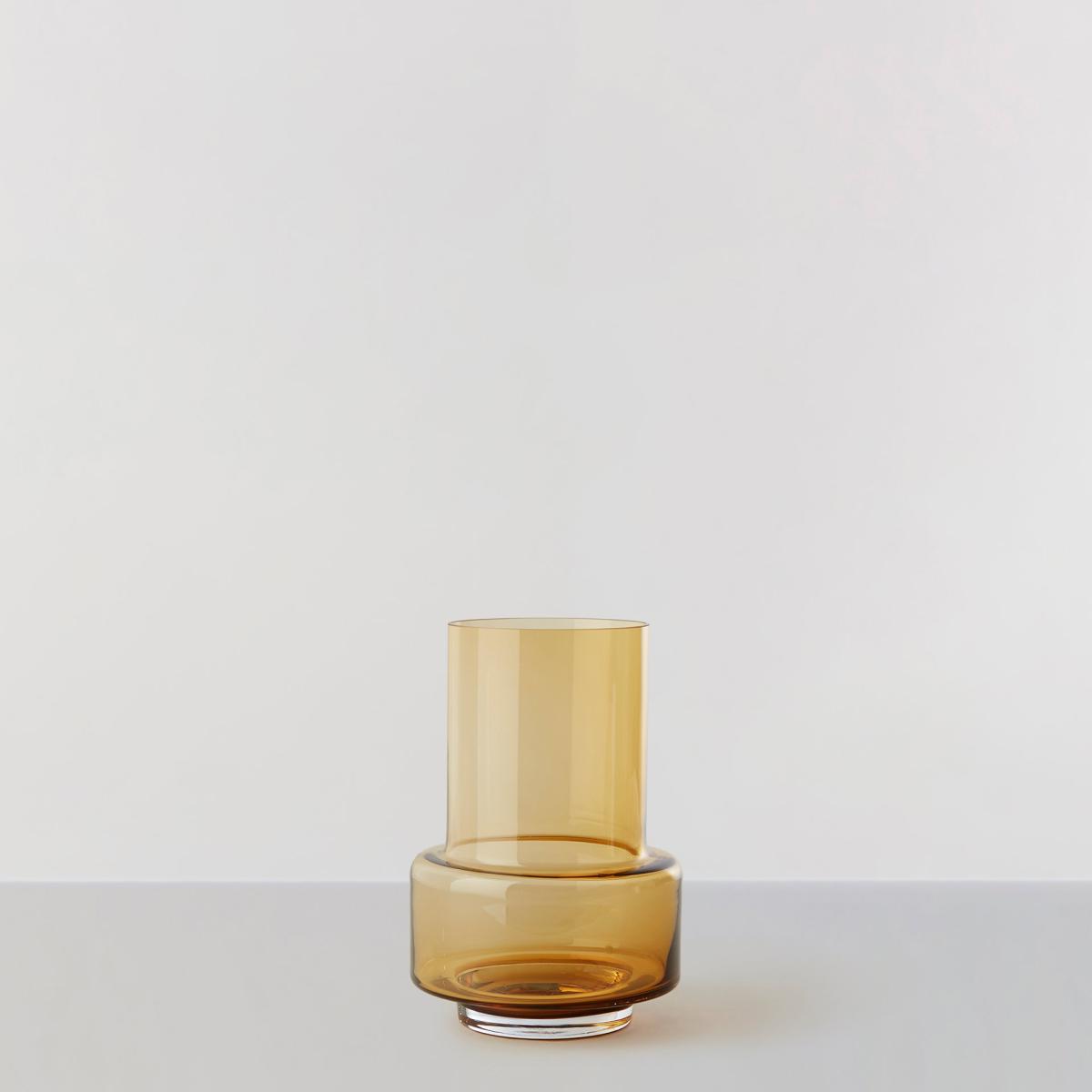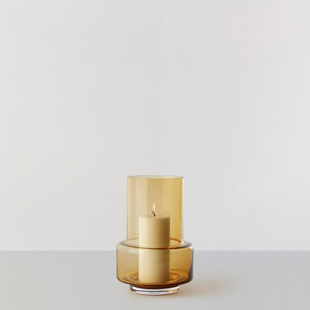 I love this little hurricane for its simple yet bold presence. The amber tint adds warmth and a touch of colour without overwhelming the space, making it versatile across various interior styles-from modern minimalism to cosy vintage. It's ideal for creating a relaxed atmosphere on a side table, mantelpiece, or even as a centrepiece in a dining area. For styling tips, try pairing it with natural materials like wood or wicker to heighten its earthy appeal, or group several in different heights for a striking vignette. Practically, it works well with pillar or tealight candles and can double as a protective cover for smaller flames, making it both beautiful and functional.