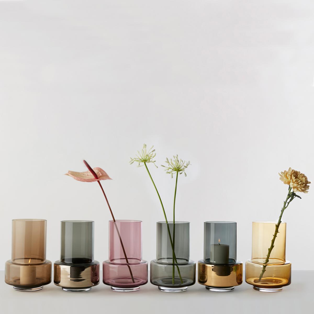 This Hurricane no. 26 from the Danish brand Ro Collection is evocative of an antique kerosene lamp — just like the classic light fixture, the Hurricane exudes a graceful glow and gentle atmosphere that is the perfect backdrop for any space. The beautiful lantern casts a luxurious shine whether you are inside or out of doors — a gleaming little keepsake out on the balcony for a crisp summer night, perhaps? Because the Hurricane tea light is made of mouth blown glass, small variations can occur in terms of air bubbles and the intensity of colour, rendering each individual piece entirely unique. The tea light's distinctive shape also makes it an excellent vase for stunning bouquets or a vessel for storing paint brushes. The Hurricane tea light is available in several sizes and colours.