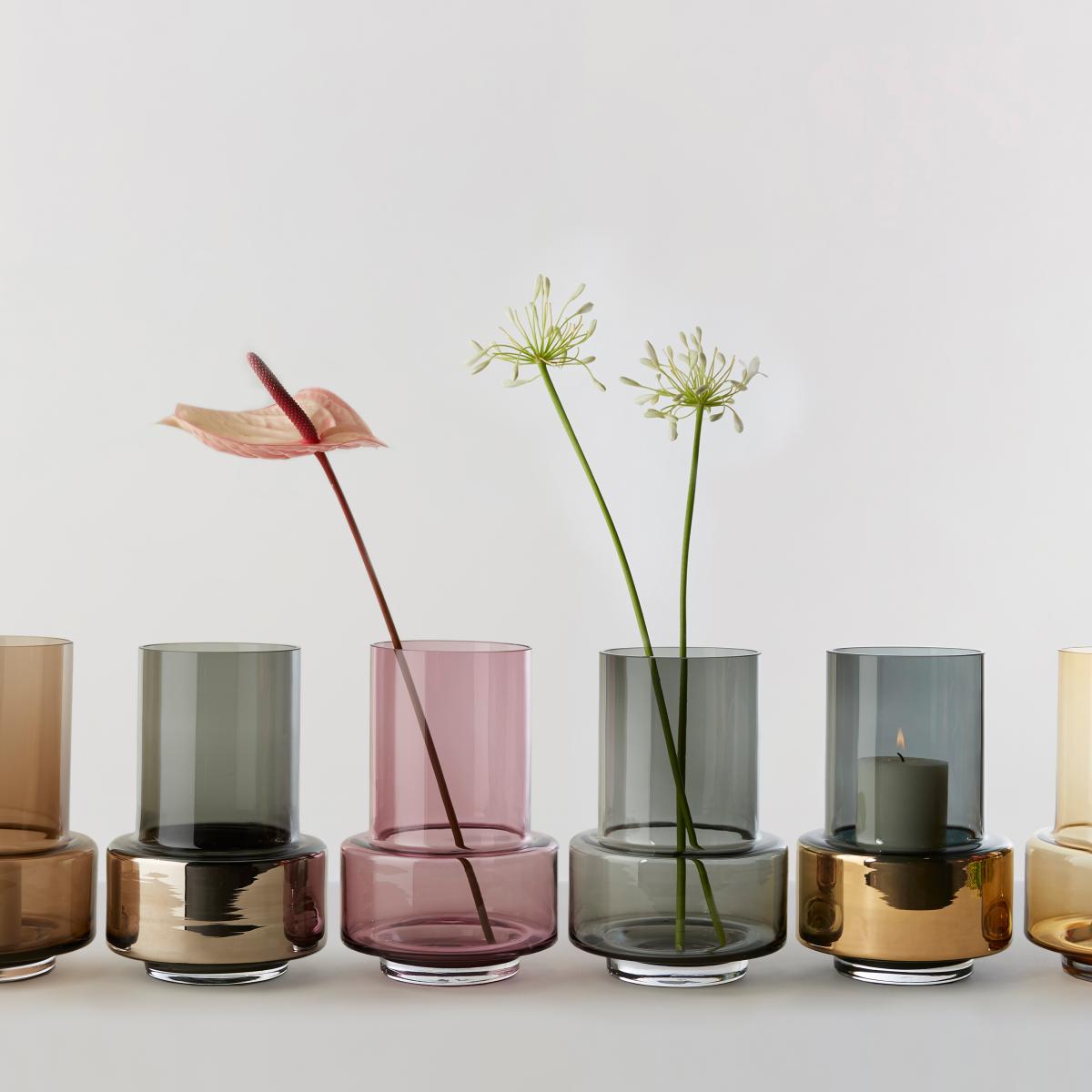 This Hurricane no. 26 from the Danish brand Ro Collection is evocative of an antique kerosene lamp — just like the classic light fixture, the Hurricane exudes a graceful glow and gentle atmosphere that is the perfect backdrop for any space. The beautiful lantern casts a luxurious shine whether you are inside or out of doors — a gleaming little keepsake out on the balcony for a crisp summer night, perhaps? Because the Hurricane tea light is made of mouth blown glass, small variations can occur in terms of air bubbles and the intensity of colour, rendering each individual piece entirely unique. The tea light's distinctive shape also makes it an excellent vase for stunning bouquets or a vessel for storing paint brushes. The Hurricane tea light is available in several sizes and colours.