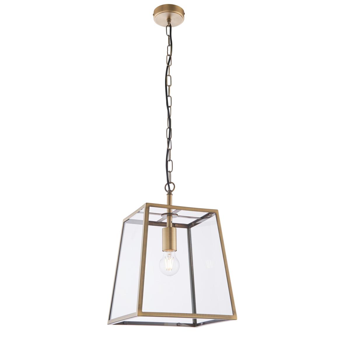 Pendant LED Dimmable IP20 Matt antique brass effect plate & clear glass Class 1 Endon Collection Single Indoor LED lamp MV Pendant.