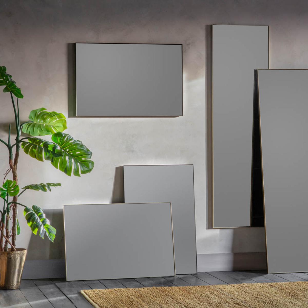 With a sleek stylish design and striking minimalistic metal frame in a subtle, yet glamourous champagne finish this mirror is just what your room needs. Available in other shapes and finishes.