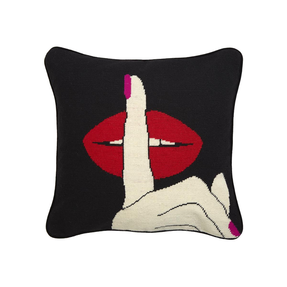Sexy, seductive, scandalous and saucy, this cushion represents a sensual mouth that tells us to be quiet. With audacity and fantasy, American designer and ceramicist Jonathan Adler revisits the technique of cross-stitch with offbeat, subversive, rock patterns. Embroidered by hand, this woollen cushion is the result of remarkable artisanal work. You’ll love the delightful discrepancy between the cross-stitch technique that reminds us of a quaint world and Jonathan Adler's colourful, pop, offbeat imagery. Inspired by hyperrealism and Pop Art, this sensual mouth is loaded with great emotional force. You’ll immediately recognise the inimitable style of American Jonathan Adler. His refined, kaleidoscopic world is inspired by pop culture, American modernism, the origins of hip-hop, contemporary art and fashion. Jonathan Adler has become a eulogist of an uninhibited, playful and punchy style of decoration, defending irreverent luxury and mixing American modernism with Arts & Crafts references. This baroque, pop cushion is perfect for creating an eccentric, amusing decor. The back of the cushion is covered with luxurious velvet.