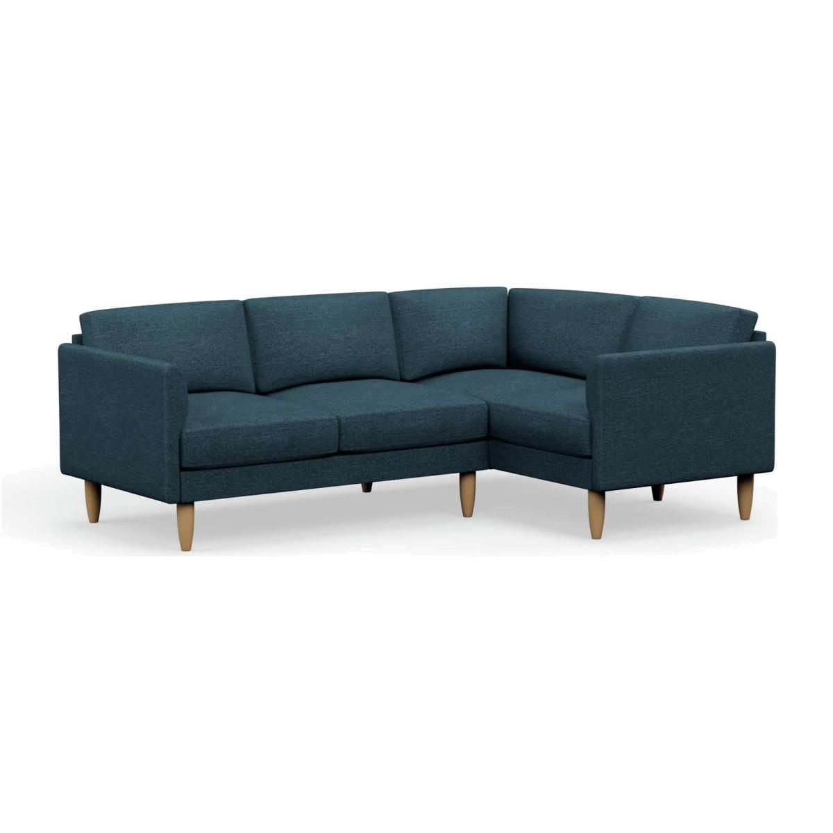No need to choose form over function, our stylish Rise 4 seat corner sofa-in-a-box gives you ultimate versatility and maximum comfort. Perfect for rooms where a sleek silhouette is needed, we've paired our classic contemporary style with an elegant curved arm for a more refined profile. Thoughtfully designed with a mix of old and new techniques, our traditional hand woven platform bases are paired with modern foam filled seat cushions for a medium to firm sit, and we've even included recycled polyester in our back cushions. All Hutch sofas are handmade in the UK and come with a 20 year frame guarantee. No tools required - all of our sofas are easy to assemble and can be put together in no time. Simply screw the legs in, slot the backs and arms in, add your cushions and you're ready to go. Even better - you can conifgure the sofa to be left or right hand facing! Reversible corner. Material: Made from 91% polyester and 9% polyamide. Light wood feet. Medium firm seat cushions. Fixed seats with foam filling. Removable cushion(s) with fibre filling. Dimensions: Size H89, longer width 226, shorter width 161,. Floor to seat height: 50cm. Depth of seat: 53cm. Height of seat back: 41cm. Shorter seating area width between arms: 121cm. Longer seating area width between arms: 186cm. Height of arm rest: 63cm. Weight: 97kg. Packaged dimensions: Package size H89, W55, D23cm. Second package size H93, W133.5, D61.5cm. General information: Wipe clean or lightly vacuum. Minimal assembly. Maximum individual user weight: 130kg. Manufacturer's 20 year frame guarantee.