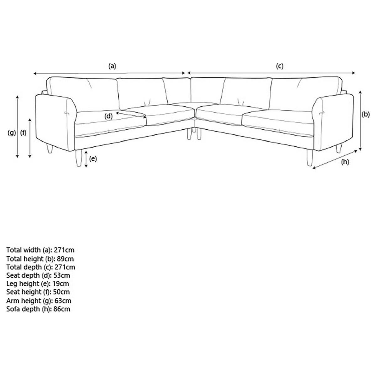 No need to choose form over function, our stylish Rise 7 seat corner sofa-in-a-box gives you ultimate versatility and maximum comfort. Perfect for rooms where a sleek silhouette is needed, we've paired our classic contemporary style with an elegant curved arm for a more refined profile. Thoughtfully designed with a mix of old and new techniques, our traditional hand woven platform bases are paired with modern foam filled seat cushions for a medium to firm sit, and we've even included recycled polyester in our back cushions. All Hutch sofas are handmade in the UK and come with a 20 year frame guarantee. No tools required - all of our sofas are easy to assemble and can be put together in no time. Simply screw the legs in, slot the backs and arms in, add your cushions and you're ready to go. Even better - you can conifgure the sofa to be left or right hand facing! Reversible corner. Material: Made from 91% polyester and 9% polyamide. Light wood feet. Medium firm seat cushions. Removable seats with foam filling. Removable cushion(s) with fibre filling. Dimensions: Size H89, longer width 271, shorter width 271,. Floor to seat height: 50cm. Depth of seat: 53cm. Height of seat back: 41cm. Shorter seating area width between arms: 231cm. Longer seating area width between arms: 231cm. Height of arm rest: 63cm. Weight: 130kg. Packaged dimensions: Package size H89, W55, D23cm. Second package size H93, W178.5, D61.5cm. General information: Wipe clean or lightly vacuum. Minimal assembly. Maximum individual user weight: 130kg. Manufacturer's 20 year frame guarantee.