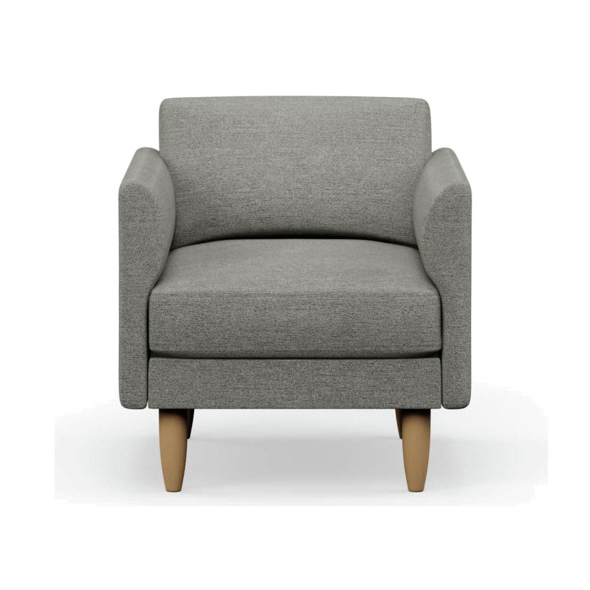 No need to choose form over function, our stylish Rise Armchair-in-a-box gives you ultimate versatility and maximum comfort. Perfect for rooms where a sleek silhouette is needed, we've paired our classic contemporary style with an elegant curved arm for a more refined profile. Thoughtfully designed with a mix of old and new techniques, our traditional hand woven platform bases are paired with modern foam filled seat cushions for a medium to firm sit, and we've even included recycled polyester in our back cushions. All Hutch armchairs are handmade in the UK and come with a 20 year frame guarantee. No tools required - all of our armchairs are easy to assemble and can be put together in no time. Simply screw the legs in, slot the backs and arms in, add your cushions and you're ready to go. Material: Made from 91% polyester and 9% polyamide. Light wood feet. Fixed seat with foam filling. Removable cushion(s) with fibre filling. Dimensions: Size H89, W83, D86cm. Floor to seat height: 50cm. Depth of seat: 53cm. Height of seat back: 41cm. Width of seating area between arms: 65cm. Height of arm rest: 63cm. Weight: 33kg. Packaged dimensions: Package size H92, W58, D68.5cm. Second package size H89, W55, D23cm. General information: Wipe clean or lightly vacuum. Plump cushions regularly to maintain shape. Minimal assembly. Maximum individual user weight 130kg. Manufacturer's 20 year frame guarantee.