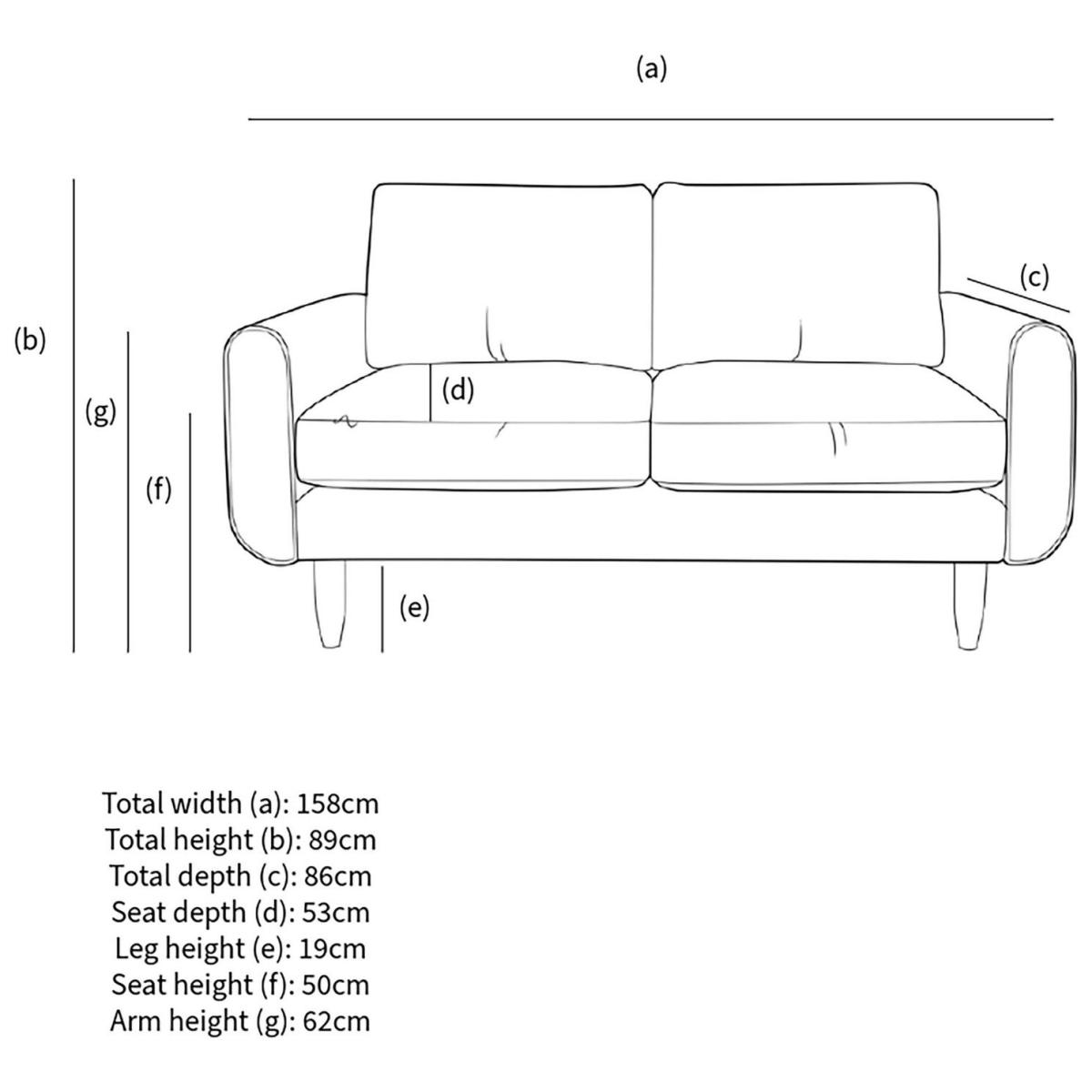No need to choose form over function, our stylish Rise 2 Seater Sofa-in-a-box gives you ultimate versatility and maximum comfort. We've kept our Round sofa arms contemporary with a clean profile and minimalist design, but added just the right amount of curve to add softness into any room. Thoughtfully designed with a mix of old and new techniques, our traditional hand woven platform bases are paired with modern foam filled seat cushions for a medium to firm sit, and we've even included recycled polyester in our back cushion. All Hutch sofas are handmade in the UK and come with a 20 year frame guarantee. No tools required - all of our sofas are easy to assemble and can be put together in no time. Simply screw the legs in, slot the backs and arms in, add your cushions and you're ready to go. Material: Made from 91% polyester and 9% polyamide. Light wood feet - light wood. Medium firm seat cushions. Fixed seats with foam filling. Removable cushion(s) with fibre filling. Dimensions: Size H89, W158, D86cm. Floor to seat height: 50cm. Depth of seat: 53cm. Height of seat back: 41cm. Width of seating area between arms: 130cm. Height of arm rest: 62cm. Weight: 49kg. Packaged dimensions: Package size H92, W133.5, D58cm. Second package size H89, W47, D30cm. General information: Wipe clean or lightly vacuum. Minimal assembly. Maximum individual user weight: 130kg. Manufacturer's 20 year frame guarantee.