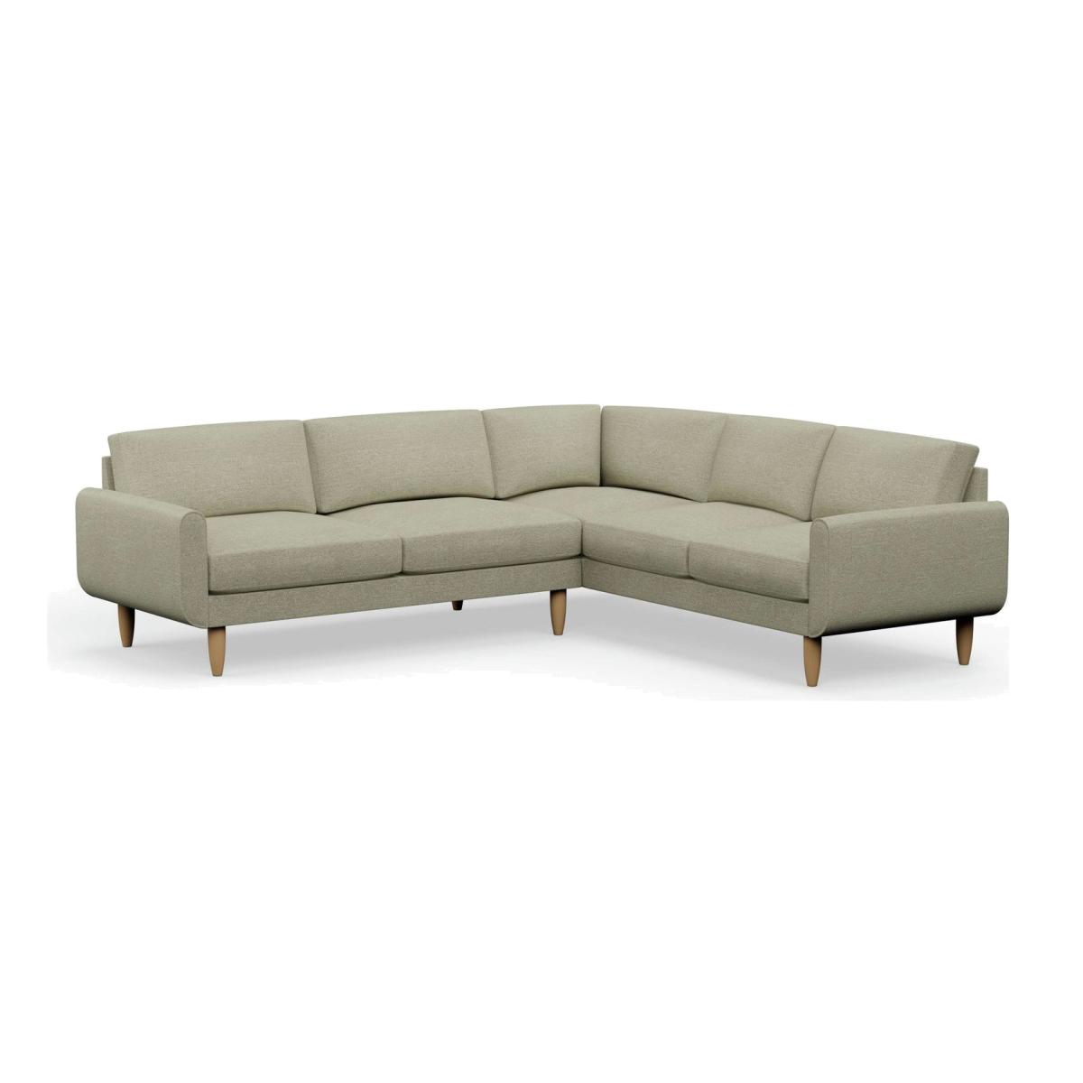 No need to choose form over function, our stylish Rise 6 Seat Corner Sofa-in-a-box gives you ultimate versatility and maximum comfort. We've kept our Round sofa arms contemporary with a clean profile and minimalist design, but added just the right amount of curve to add softness into any room. Thoughtfully designed with a mix of old and new techniques, our traditional hand woven platform bases are paired with modern foam filled seat cushions for a medium to firm sit, and we've even included recycled polyester in our back cushion. All Hutch sofas are handmade in the UK and come with a 20 year frame guarantee. No tools required - all of our sofas are easy to assemble and can be put together in no time. Simply screw the legs in, slot the backs and arms in, add your cushions and you're ready to go. Even better - you can conifgure the sofa to be left or right hand facing! Reversible corner. Material: Made from 91% polyester and 9% polyamide. Light wood feet. Medium firm seat cushions. Fixed seats with foam filling. Removable cushion(s) with fibre filling. Dimensions: Size H89, longer width 276, shorter width 231,. Floor to seat height: 50cm. Depth of seat: 53cm. Height of seat back: 41cm. Shorter seating area width between arms: 186cm. Longer seating area width between arms: 231cm. Height of arm rest: 62cm. Weight: 122kg. Packaged dimensions: Package size H89, W47, D30cm. Second package size H93, W178.5, D61.5cm. General information: Wipe clean or lightly vacuum. Minimal assembly. Maximum individual user weight: 130kg. Manufacturer's 20 year frame guarantee.