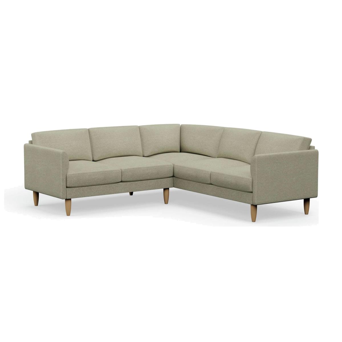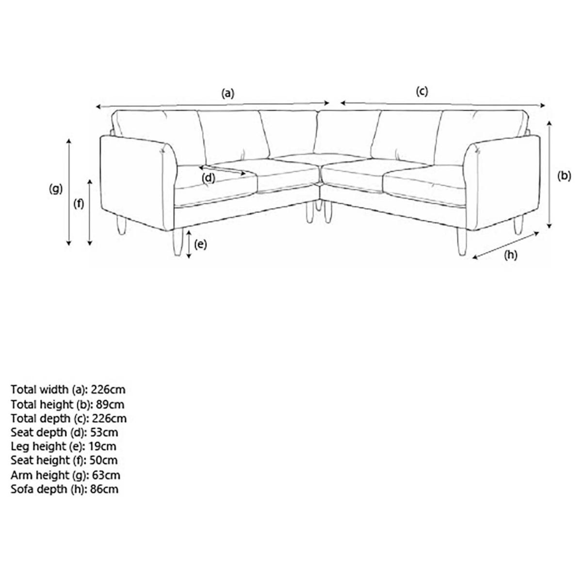 No need to choose form over function, our stylish Rise 5 seat Plus corner sofa-in-a-box gives you ultimate versatility and maximum comfort. Perfect for rooms where a sleek silhouette is needed, we've paired our classic contemporary style with an elegant curved arm for a more refined profile. Thoughtfully designed with a mix of old and new techniques, our traditional hand woven platform bases are paired with modern foam filled seat cushions for a medium to firm sit, and we've even included recycled polyester in our back cushions. All Hutch sofas are handmade in the UK and come with a 20 year frame guarantee. No tools required - all of our sofas are easy to assemble and can be put together in no time. Simply screw the legs in, slot the backs and arms in, add your cushions and you're ready to go. Reversible corner. Material: Made from 91% polyester and 9% polyamide. Light wood feet. Medium firm seat cushions. Fixed seats with foam filling. Removable cushion(s) with fibre filling. Dimensions: Size H89, longer width 226, shorter width 226,. Floor to seat height: 50cm. Depth of seat: 53cm. Height of seat back: 41cm. Shorter seating area width between arms: 186cm. Longer seating area width between arms: 186cm. Height of arm rest: 63cm. Weight: 112kg. Packaged dimensions: Package size H89, W55, D23cm. Second package size H93, W133.5, D61.5cm. General information: Wipe clean or lightly vacuum. Plump cushions regularly to maintain shape. Minimal assembly. Maximum individual user weight: 130kg. Manufacturer's 20 year frame guarantee.
