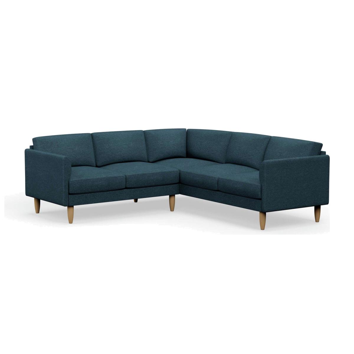 No need to choose form over function, our stylish Rise 5 seat Plus corner sofa-in-a-box gives you ultimate versatility and maximum comfort. Perfect for rooms where a sleek silhouette is needed, we've paired our classic contemporary style with an elegant curved arm for a more refined profile. Thoughtfully designed with a mix of old and new techniques, our traditional hand woven platform bases are paired with modern foam filled seat cushions for a medium to firm sit, and we've even included recycled polyester in our back cushions. All Hutch sofas are handmade in the UK and come with a 20 year frame guarantee. No tools required - all of our sofas are easy to assemble and can be put together in no time. Simply screw the legs in, slot the backs and arms in, add your cushions and you're ready to go. Reversible corner. Material: Made from 91% polyester and 9% polyamide. Light wood feet. Medium firm seat cushions. Fixed seats with foam filling. Removable cushion(s) with fibre filling. Dimensions: Size H89, longer width 226, shorter width 226,. Floor to seat height: 50cm. Depth of seat: 53cm. Height of seat back: 41cm. Shorter seating area width between arms: 186cm. Longer seating area width between arms: 186cm. Height of arm rest: 63cm. Weight: 112kg. Packaged dimensions: Package size H89, W55, D23cm. Second package size H93, W133.5, D61.5cm. General information: Wipe clean or lightly vacuum. Plump cushions regularly to maintain shape. Minimal assembly. Maximum individual user weight: 130kg. Manufacturer's 20 year frame guarantee.