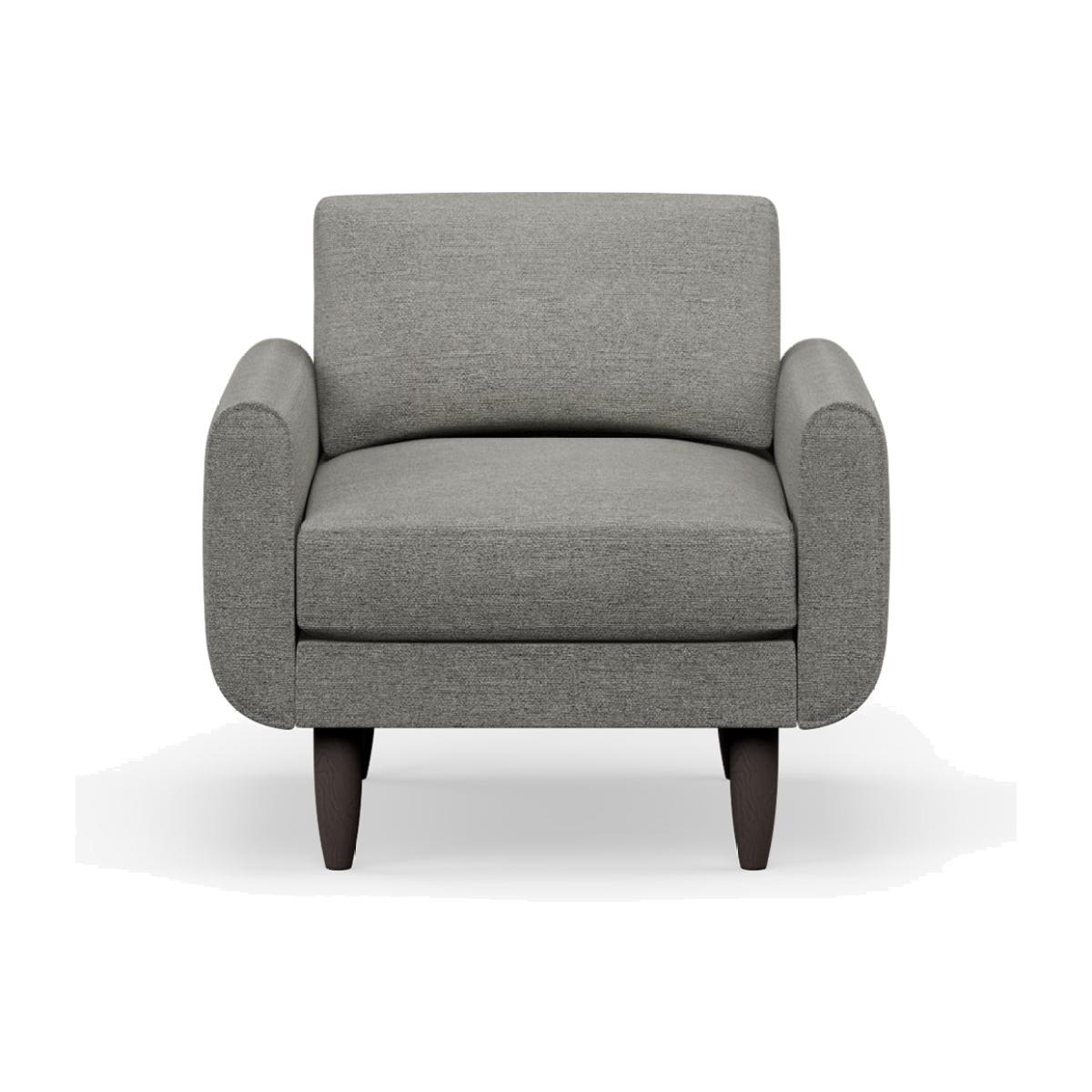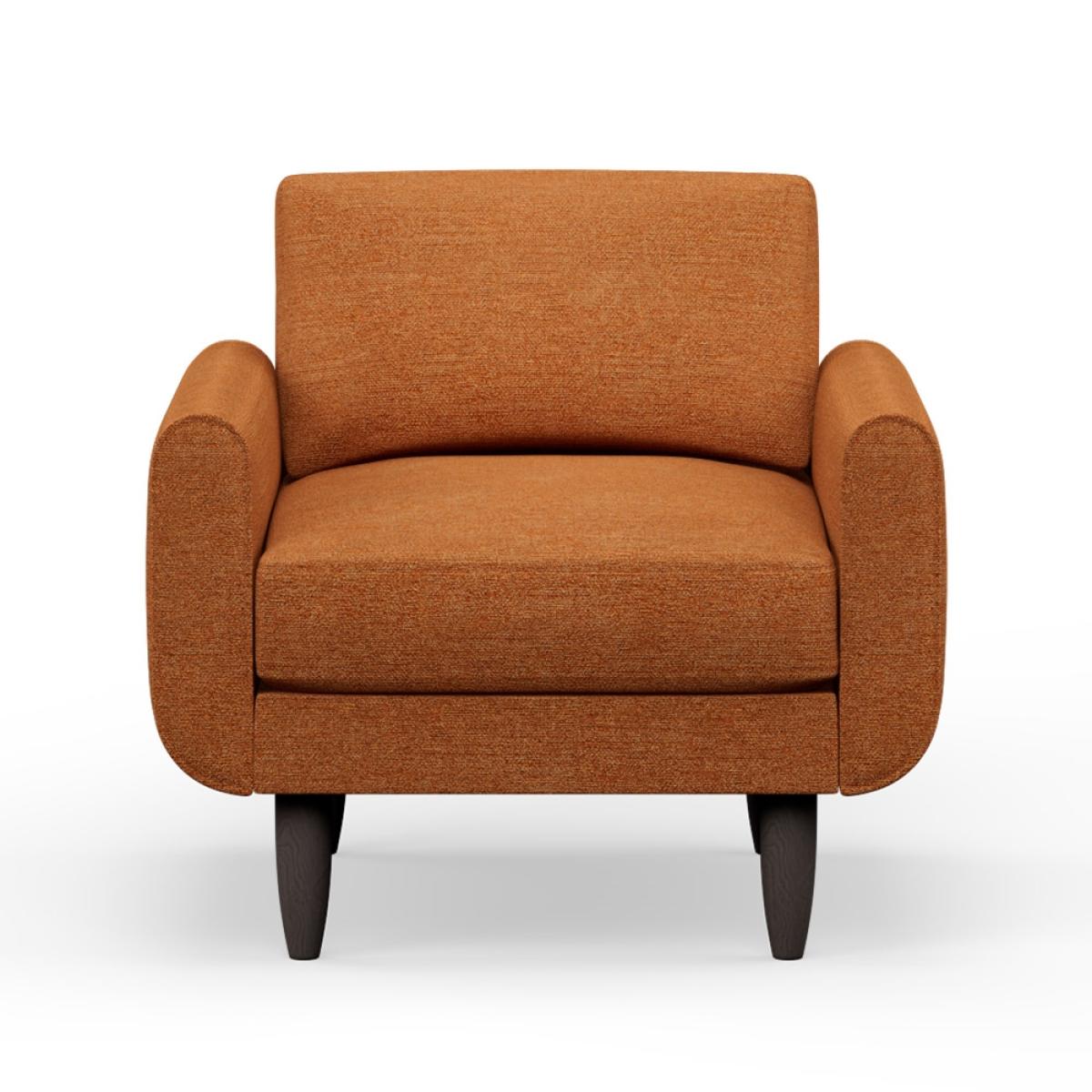 The Hutch Rise Textured Weave Armchair with Round Arms is part of the marvellous Hutch range of sofas and armchairs. All lovingly handmade in the UK from top-notch materials, Hutch are sofa and armchair experts with decades of experience. All Hutch chairs and sofas are delivered broken down into slim boxes - super easy to get through any door, round any corner or up any flight of stairs. No need to PIVOT!! PIVOT!! No tools are required so assembly is quick and easy too – slot the pieces together and take a load off. Available in a choice of four fabric colours: Aegean, Dove, Rust and Oatmeal (lovely shades of blue, grey, orange and neutral), this beautifully textured weave with its subtle wool effect is soft yet hard-wearing and exceeds British Standards for colour fastness and wear. The Hutch Rise Textured Weave Armchair with Round Arms is a modern classic.