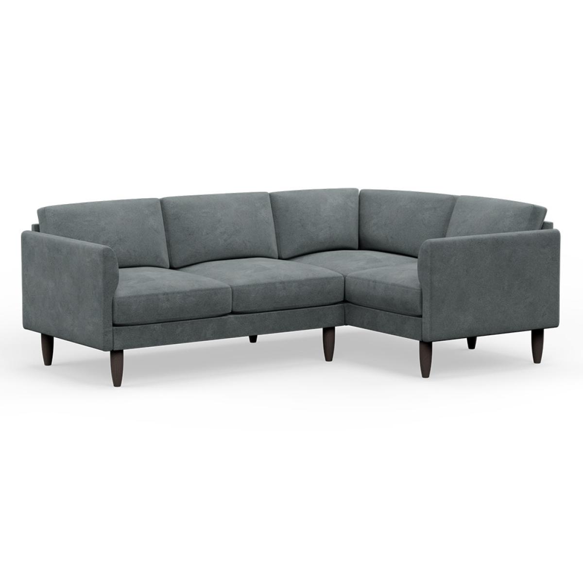 The Hutch Rise Velvet 4 Seater Corner Sofa with Curve Arms is part of the fabulous Hutch range of sofas and armchairs. All lovingly handmade in the UK from top notch materials, Hutch are sofa and armchair experts with decades of experience. All Hutch chairs and sofas are delivered broken down into slim boxes - super easy to get through any door, round any corner or up any flight of stairs. No need to PIVOT!! PIVOT!! No tools are required so assembly is quick and easy too - you’ll be relaxing in no time. Available in a choice of three fabric colours: Ink, Sage and Slate (lovely hues of blue, green and grey), this sumptuous velvet is soft yet hard wearing and exceeds British Standards for colour fastness and wear. The Hutch Rise Velvet 4 Seater Corner Sofa with Curve Arms, with its tall supportive sides, is a formal modern classic.