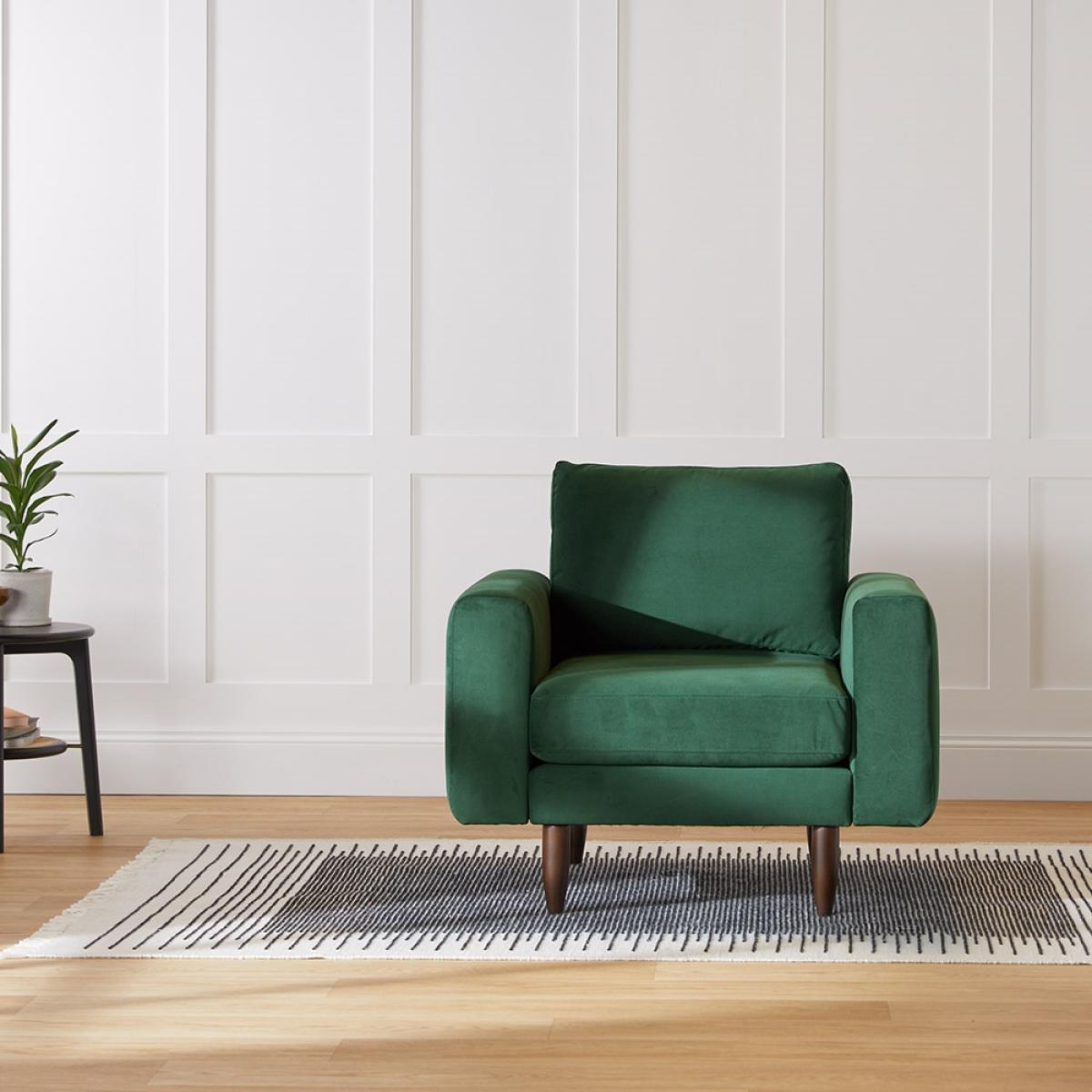 The Hutch Rise Velvet Armchair with Block Arms is part of the marvellous Hutch range of sofas and armchairs. All lovingly handmade in the UK from top-notch materials, Hutch are sofa and armchair experts with decades of experience. All Hutch chairs and sofas are delivered broken down into slim boxes - super easy to get through any door, round any corner or up any flight of stairs. No need to PIVOT!! PIVOT!! No tools are required either, so assembling this contemporary style armchair is quick and easy too - you’ll be relaxing in no time. Available in a choice of three fabric colours: Ink, Sage and Slate (lovely hues of blue, green and grey), this sumptuous velvet is soft yet hard wearing and exceeds British Standards for colour fastness and wear. The Hutch Rise Velvet Armchair with Block Arms (also known as Track Arms) has the added advantage of having flat armrests so you can balance your beverage.