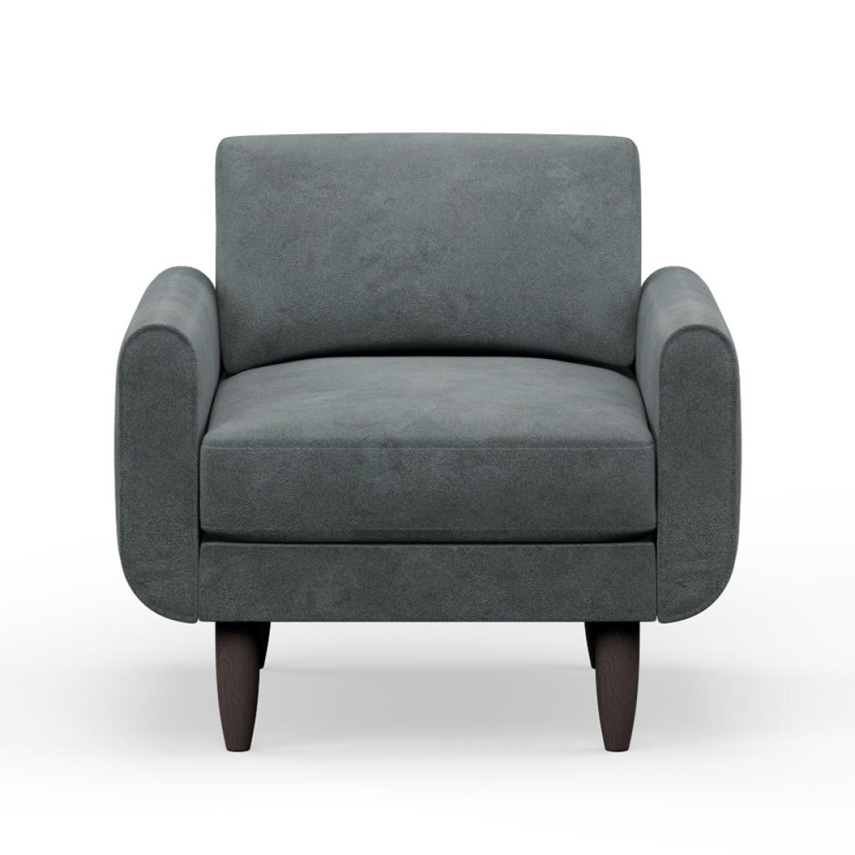 The Hutch Rise Velvet Armchair with Round Arms is part of the brilliant Hutch range of sofas and armchairs. All lovingly handmade in the UK from top-notch materials, Hutch are sofa and armchair experts with decades of experience. All Hutch chairs and sofas are delivered broken down into slim boxes - super easy to get through any door, round any corner or up any flight of stairs. No need to PIVOT!! PIVOT!! No tools are required so assembly is quick and easy too – slot the pieces together and take the weight off your feet. Available in a choice of three fabric colours: Ink, Sage and Slate (lovely hues of blue, green and grey), this sumptuous velvet is soft yet hard wearing and exceeds British Standards for colour fastness and wear. The Hutch Rise Velvet Armchair with Round Arms is a modern classic.