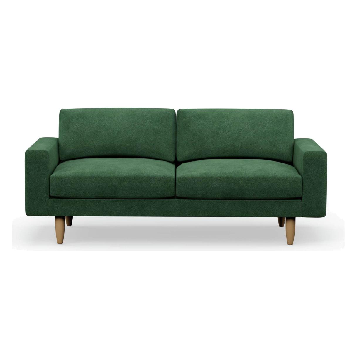 No need to choose form over function, our stylish Rise 3 Seater Sofa-in-a-box gives you ultimate versatility and maximum comfort. Inspired by mid-century modern design, we've added square profile block arms to our classic contemporary frame and finished with tapered wooden legs for the ultimate timeless look. Thoughtfully designed with a mix of old and new techniques, our traditional hand woven platform bases are paired with modern foam filled seat cushions for a medium to firm sit, and we've even included recycled polyester in our back cushion. All Hutch sofas are handmade in the UK and come with a 20 year frame guarantee. No tools required - all of our sofas are easy to assemble and can be put together in no time. Simply screw the legs in, slot the backs and arms in, add your cushions and you're ready to go. Material: Made from 100% polyester. Light wood feet - green. Medium firm seat cushions. Fixed seats with foam filling. Removable cushion(s) with fibre filling. Dimensions: Size H89, W211, D86cm. Floor to seat height: 50cm. Depth of seat: 53cm. Height of seat back: 41cm. Width of seating area between arms: 175cm. Height of arm rest: 65cm. Weight: 60.2kg. Packaged dimensions: Package size H92, W178.5, D58cm. Second package size H89, W50, D38cm. General information: Wipe clean or lightly vacuum. Minimal assembly. Maximum individual user weight: 130kg. Manufacturer's 20 year frame guarantee.