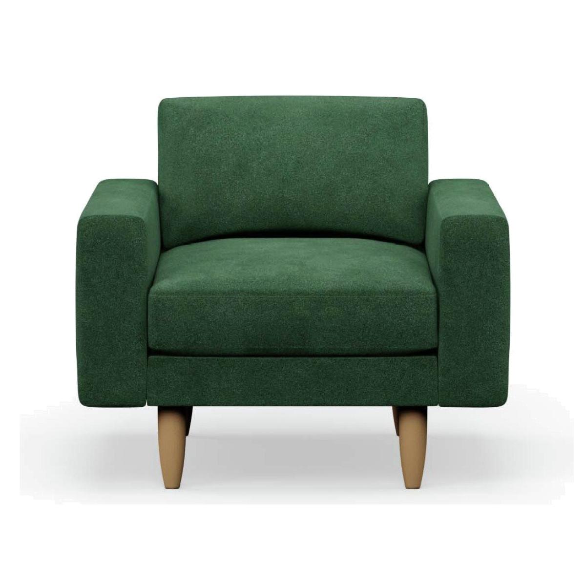 I love this armchair for its bold yet versatile look, thanks to the rich sage velvet that adds a touch of luxury and calm to any space. It works particularly well in contemporary or mid-century styled interiors, bringing a pop of colour without overwhelming the room. For practical styling, consider pairing it with neutral or earthy tones to let the green stand out, and add textured cushions or throws for extra comfort and visual interest. Its robust form and cosy fabric also make it a great statement piece in a living room or reading nook, providing a mix of style and functionality.