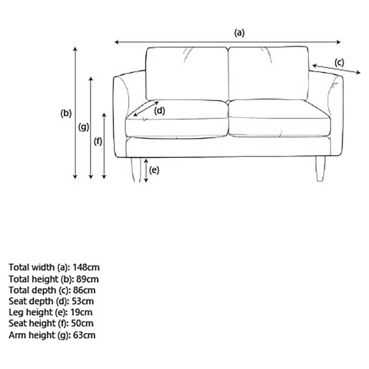 No need to choose form over function, our stylish Rise 2 seater sofa-in-a-box gives you ultimate versatility and maximum comfort. Perfect for rooms where a sleek silhouette is needed, we've paired our classic contemporary style with an elegant curved arm for a more refined profile. Thoughtfully designed with a mix of old and new techniques, our traditional hand woven platform bases are paired with modern foam filled seat cushions for a medium to firm sit, and we've even included recycled polyester in our back cushions. All Hutch sofas are handmade in the UK and come with a 20 year frame guarantee. No tools required - all of our sofas are easy to assemble and can be put together in no time. Simply screw the legs in, slot the backs and arms in, add your cushions and you're ready to go. Material: Made from 100% polyester. Light wood feet - light wood. Medium firm seat cushions. Fixed seats with foam filling. Removable cushion(s) with fibre filling. Dimensions: Size H89, W148, D86cm. Floor to seat height: 50cm. Depth of seat: 53cm. Height of seat back: 41cm. Width of seating area between arms: 130cm. Height of arm rest: 63cm. Weight: 49.2kg. Packaged dimensions: Package size H92, W133.5, D58cm. Second package size H89, W55, D23cm. General information: Wipe clean or lightly vacuum. Minimal assembly. Maximum individual user weight: 130kg. Manufacturer's 20 year frame guarantee.