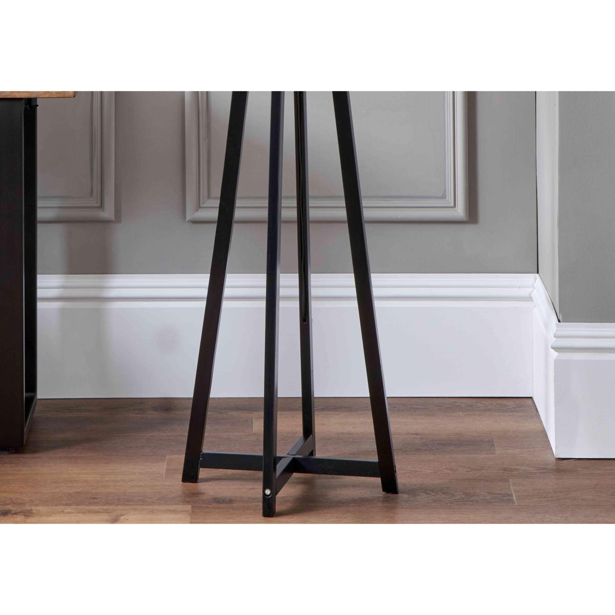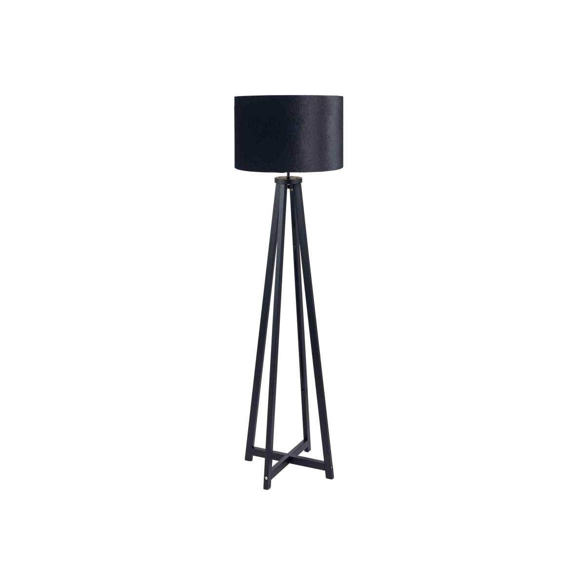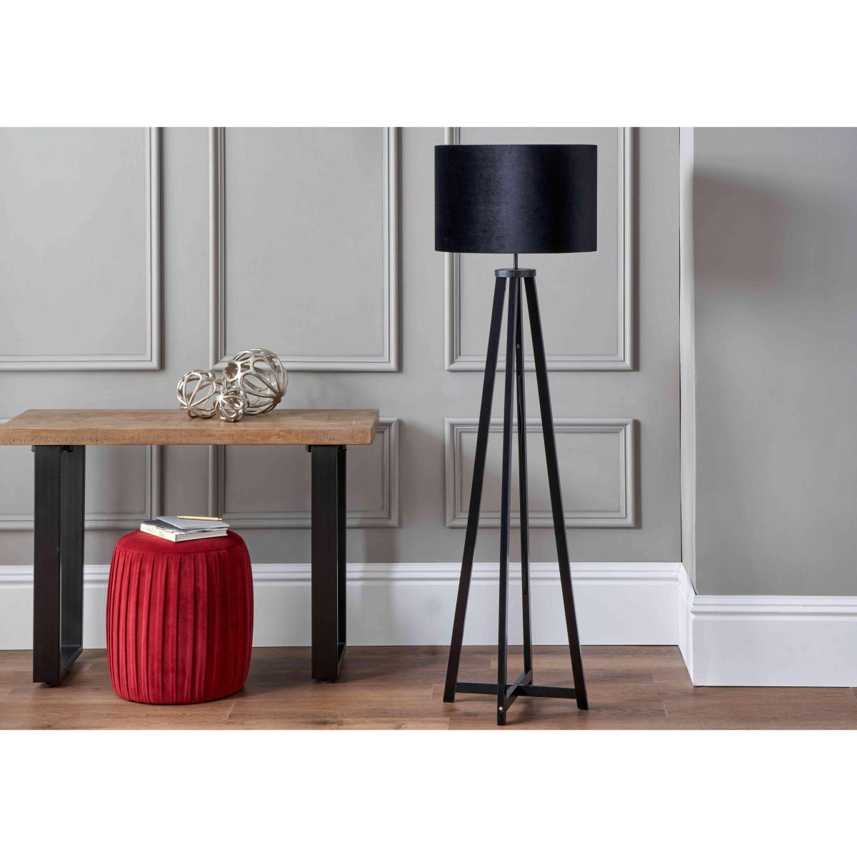 This all-black contemporary floor lamp is the perfect choice for a minimal or monochromatic living space, while the base’s wood finish gives it a naturalistic quality. Why you'll love it Striking floor lamp brings home modern, minimal design. Contemporary style. Slender and tall 4-post wood base with a matt black finish. Includes black linen cylinder lampshade. A Furniture Village online exclusive. This floor lamp is part of the Furniture Village lighting collection. What you need to know Wood base. Poly cotton lampshade. Supplied with 250 cm cable. Inline switch. Requires 1 x E27 60W bulb (not included). Dust with a soft, clean cloth. Unplug while cleaning. Dimensions Height: 159 cm (62 in). Diameter: 45 cm (18 in).