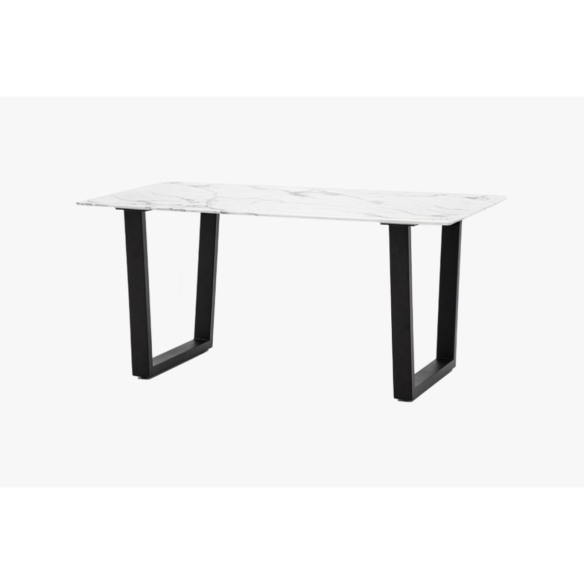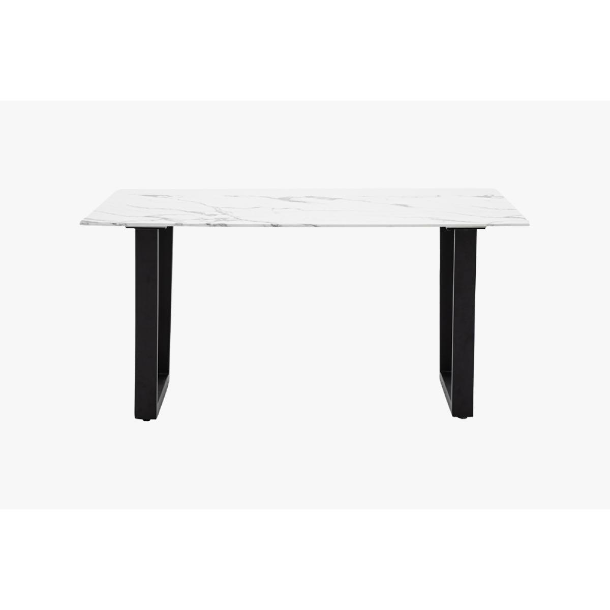Marble'lously bold style, the Huxley table combines classic marble and modern minimalism. You won't be able to take your eyes off the stunning white faux marble glass top, and minimalist black metal legs adding a contemporary edgy element and letting the marble really shine the Huxley table couldn't be more cool.