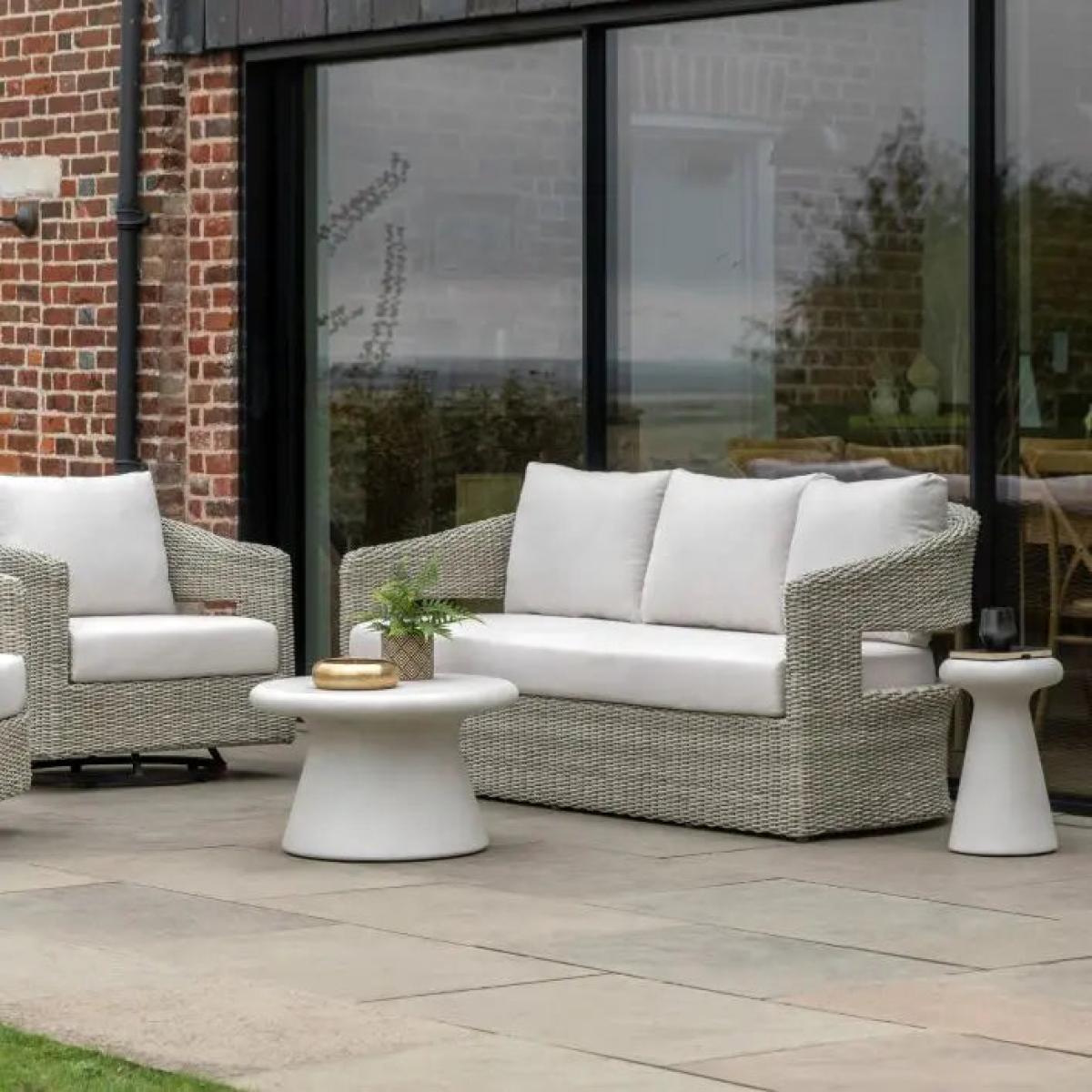 This stylish outdoor sofa is crafted with a blend of wicker and plush cushions, creating a comfortable and inviting seating option for any patio or garden. The neutral color palette complements any outdoor decor, while the durable construction ensures years of enjoyment. Perfect for relaxing with family or entertaining guests, this sofa adds a touch of sophistication to your outdoor living space. This stylish outdoor sofa is crafted with a blend of wicker and plush cushions, creating a comfortable and inviting seating option for any patio or garden. The neutral color palette complements any outdoor decor, while the durable construction ensures years of enjoyment. Perfect for relaxing with family or entertaining guests, this sofa adds a touch of sophistication to your outdoor living space.