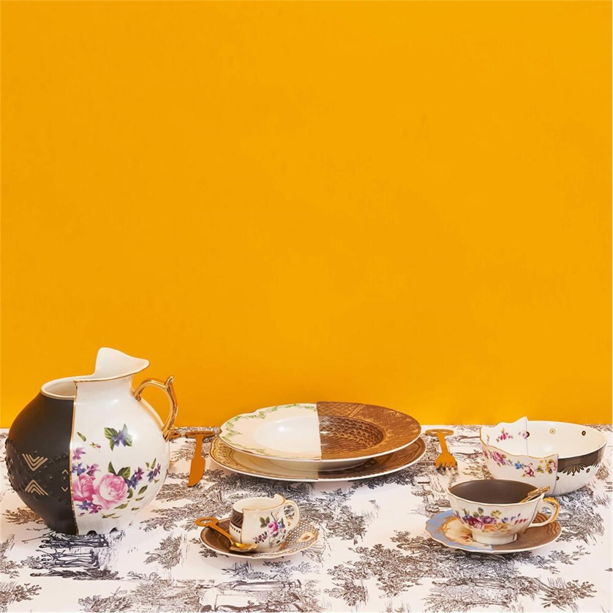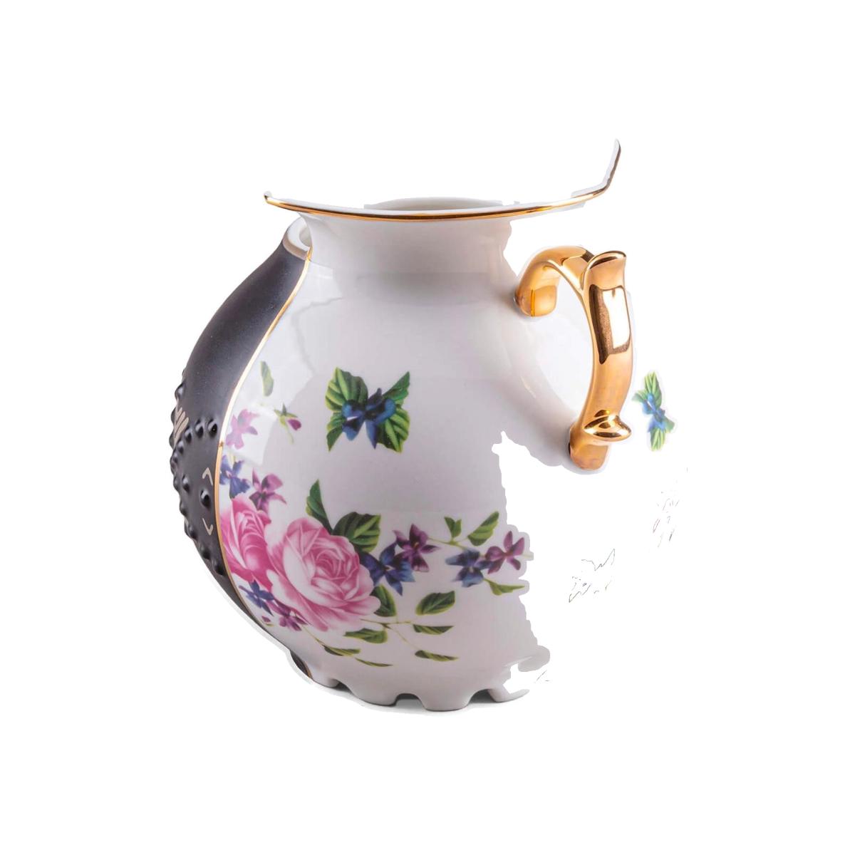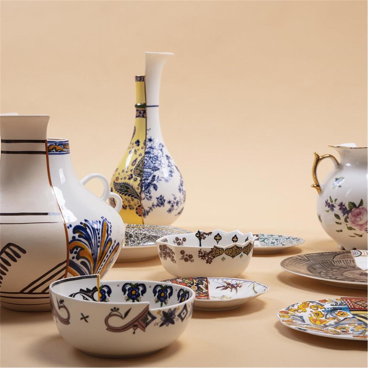 Transform your space with this Hybrid Lfe vase from Seletti. Designed by CTRLZAK, this fine bone china vase is part of the second phase of the Hybrid collection. A fusion of South American, Indian, European, and Asian designs, it features two different detailed designs sliced in half down the middle, as though two different pieces have been joined together and has been finished with hand-applied 22-carat gold accents. Pair with more designs from the Hybrid collection by Seletti to complete the look.