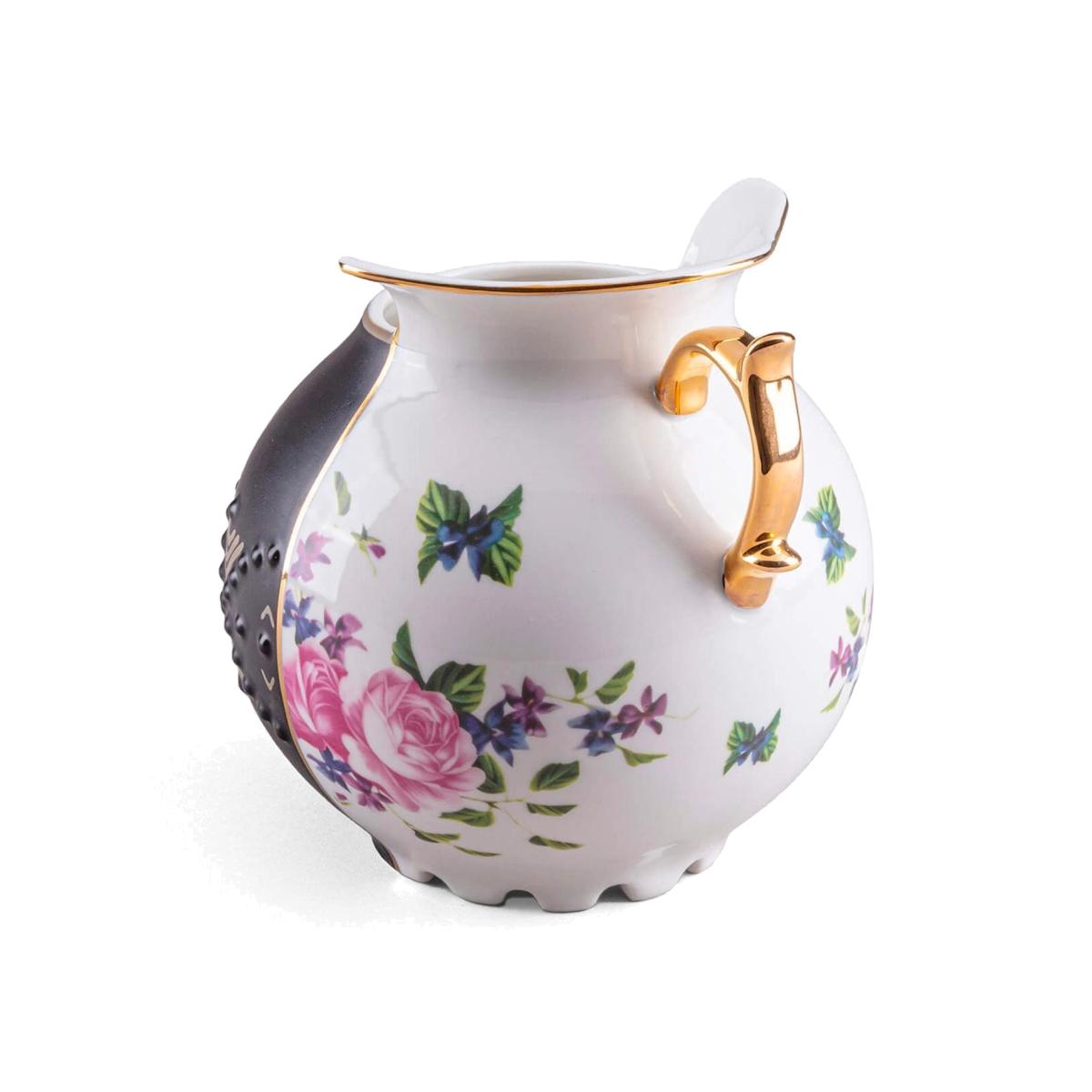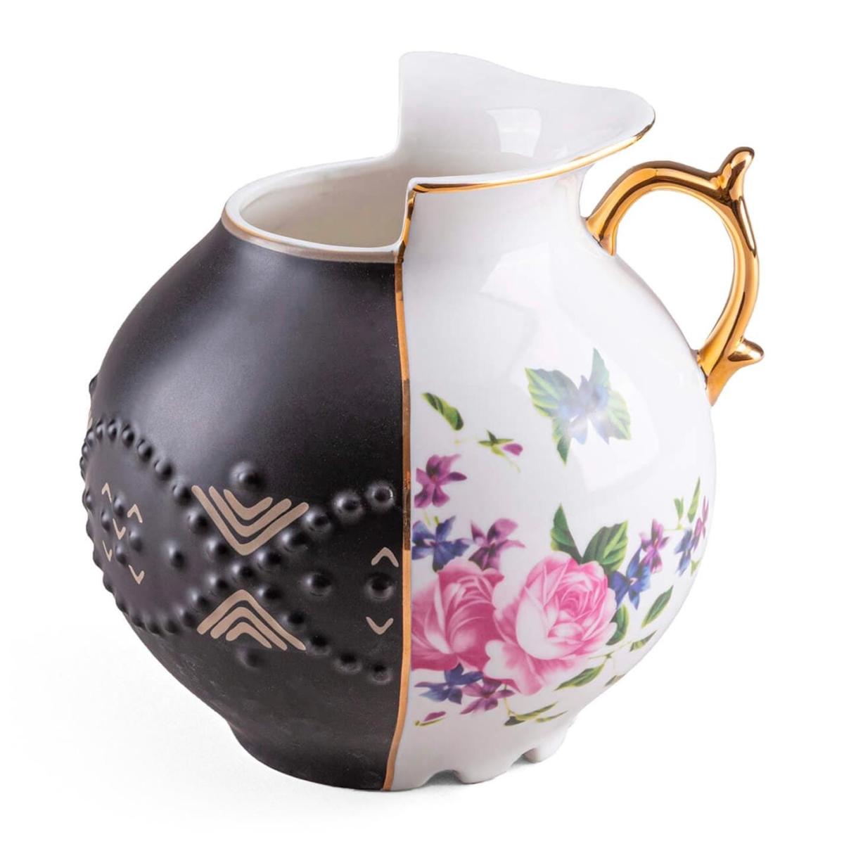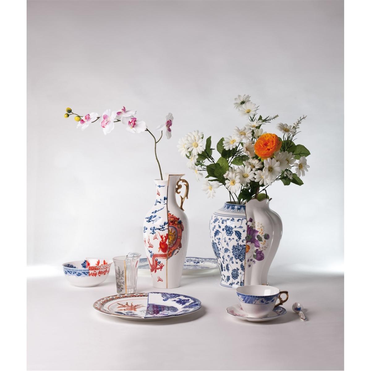 Transform your space with this Hybrid Lfe vase from Seletti. Designed by CTRLZAK, this fine bone china vase is part of the second phase of the Hybrid collection. A fusion of South American, Indian, European, and Asian designs, it features two different detailed designs sliced in half down the middle, as though two different pieces have been joined together and has been finished with hand-applied 22-carat gold accents. Pair with more designs from the Hybrid collection by Seletti to complete the look.