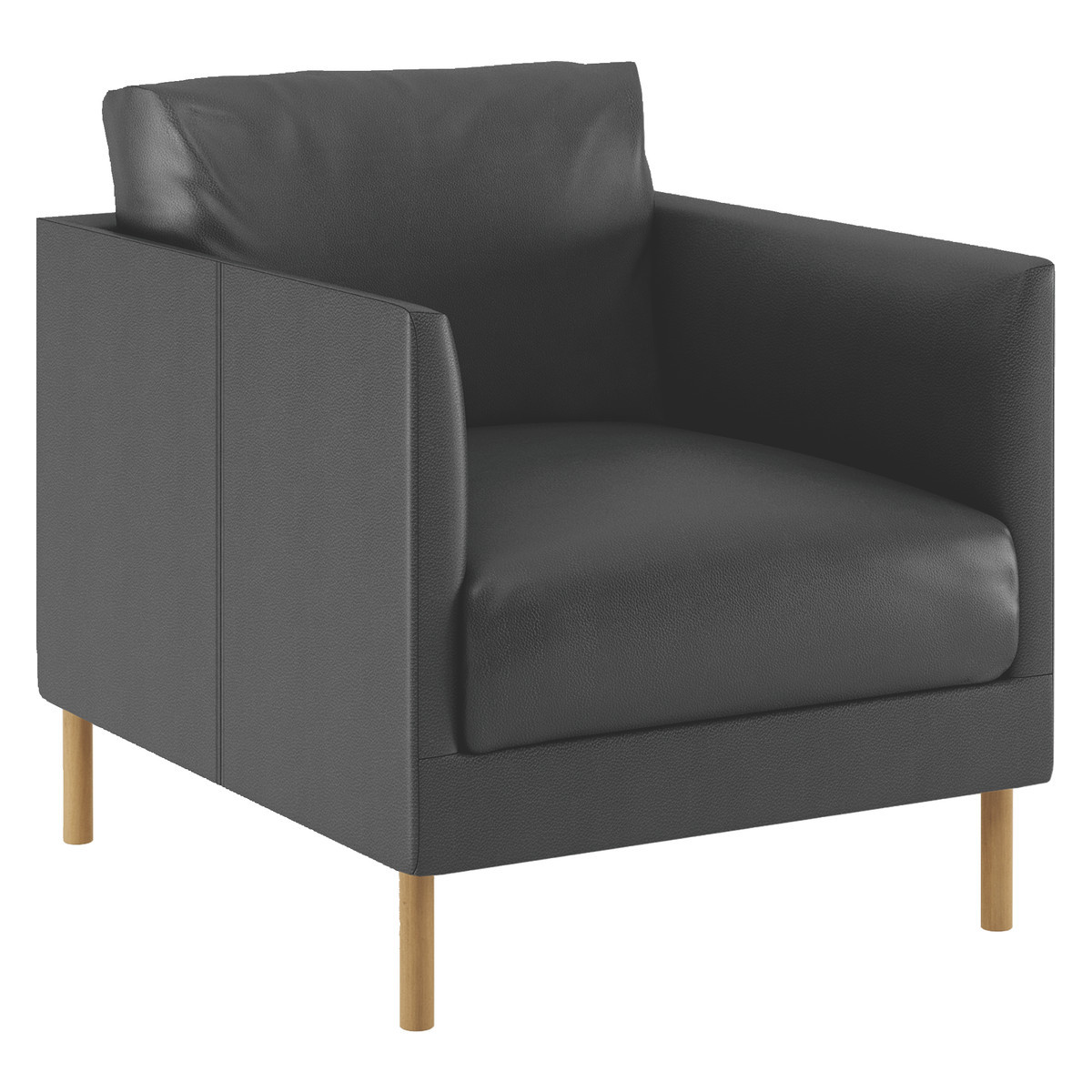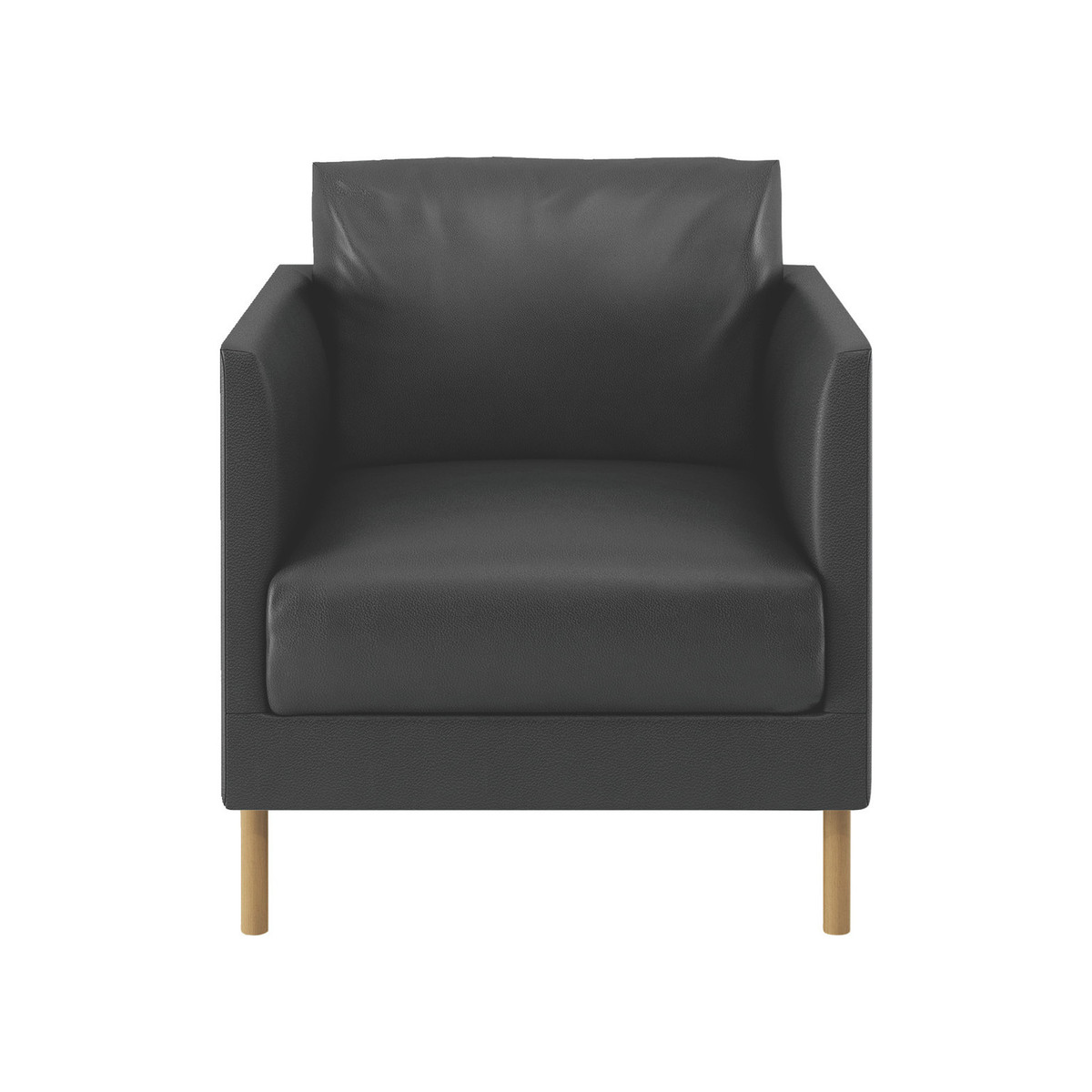 Hyde Black Leather Armchair, Wooden Legs, Black