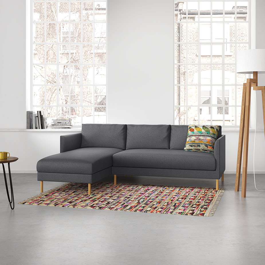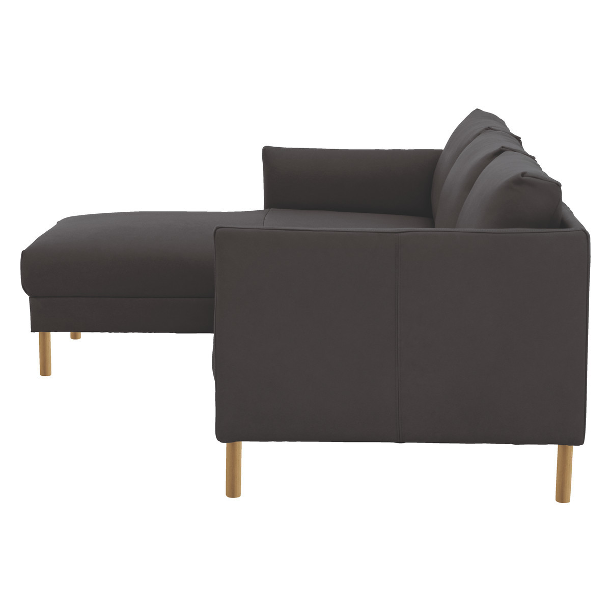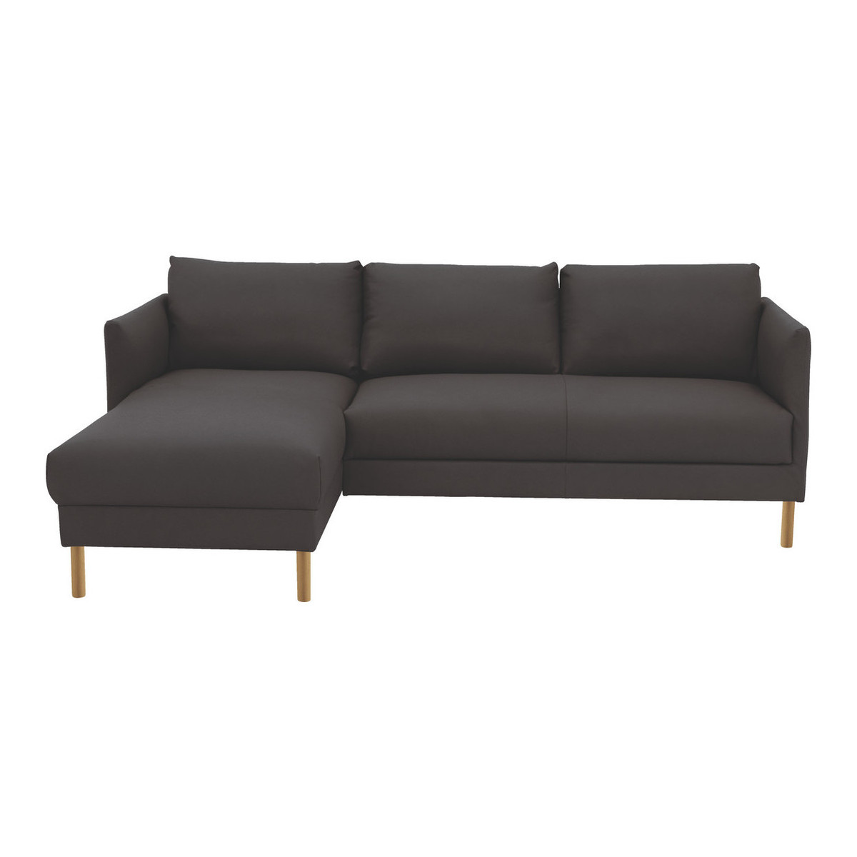 The Hyde black leather left-arm chaise sofa delivers high comfort with slender proportions.Contrasting a narrow, slim frame and legs with large, deep cushions, the sofa has a sleek, uncluttered profile. Upholstered in a premium black leather, the sofa has deep fixed seating and generous padding, providing long-lasting durability and ultimate comfort. The corner sofa is ideal for lounging and is also available as a right-arm chaise to fit the shape of your room. Part of the Hyde sofa collection available in various colours and sizes.