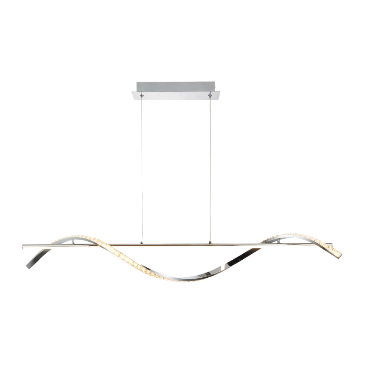 I love this modern pendant for its sleek, contemporary look and touch of luxury with the chrome finish and crystal accents. It’s a versatile piece that works particularly well in minimalist or modern interiors, especially over dining tables or in open-plan living spaces where it can serve as a statement piece. Practical styling tips include pairing it with neutral colour schemes for a clean, sophisticated vibe, or layering with other metallic or glass accents to enhance its reflective qualities. Keep in mind its slim profile, which makes it suitable for rooms with lower ceilings, and consider positioning it centrally to draw focus without overwhelming the space. It’s a great choice for adding a contemporary touch to both residential and commercial interiors.