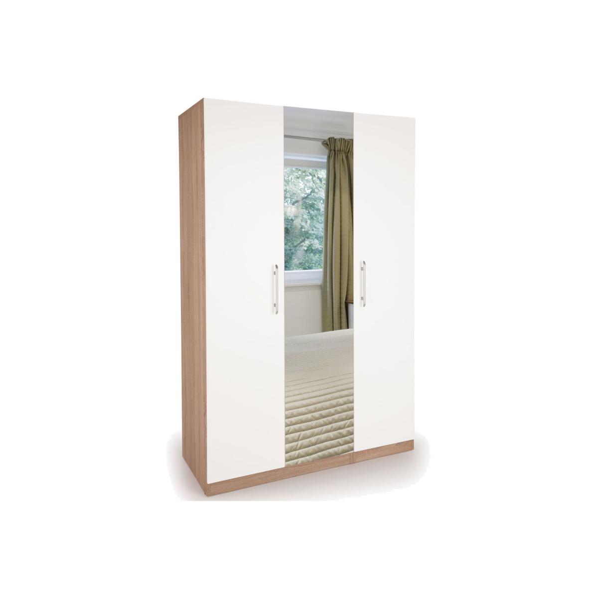 I’m a fan of this triple mirrored wardrobe for its clean, two-tone finish and built-in full-length mirror - it instantly lifts light around the room and saves you adding a separate dressing mirror. Its simple white doors framed by a natural oak effect make it equally at home in a contemporary or Scandinavian-style bedroom, and the central mirror helps a smaller space feel more open. For styling, keep nearby furnishings low-profile - think a light wood bedside table or a neutral upholstered bed - and use soft textiles (linen throws, wool cushions) to introduce subtle colour. On top of the wardrobe, a couple of woven baskets or decorative storage boxes will add texture and make the most of the height. Inside, mix hanging rails and adjustable shelves so you can store everything from coats to folded knitwear neatly.
