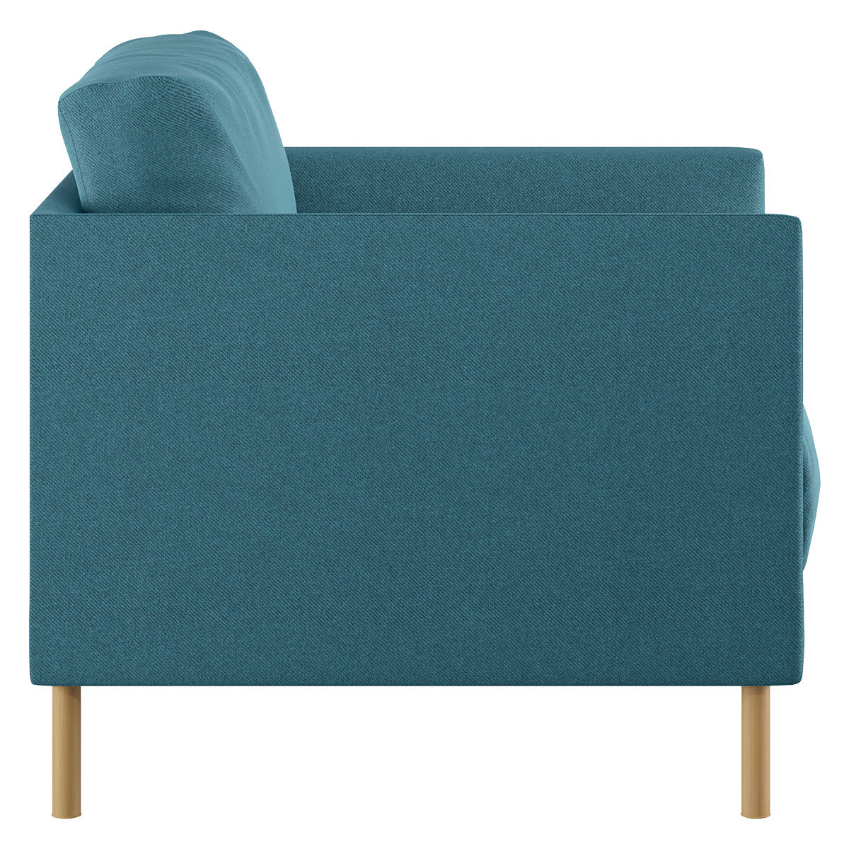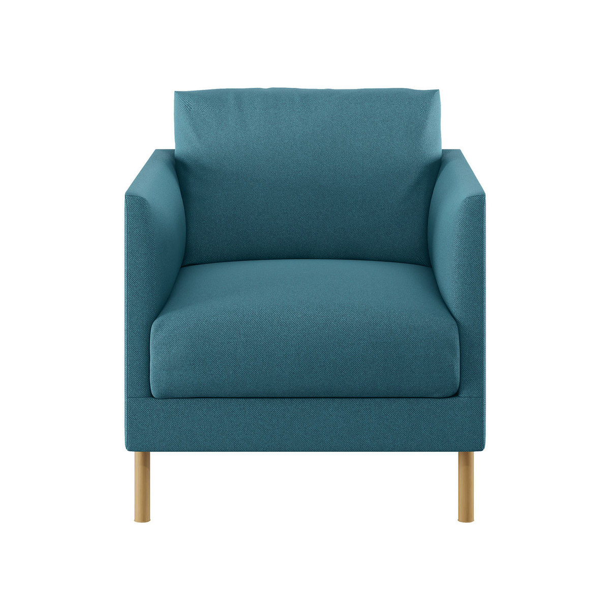 The Hyde teal soft, easy-care fabric armchair delivers high comfort with slender proportions.Contrasting a narrow, slim frame and legs with large, deep cushions, the sofa has a sleek, uncluttered profile. Upholstered in an easy-care, soft yet extremely hardwearing fabric, the sofa has deep seating and generous padding, providing long-lasting durability and ultimate comfort. Part of the Hyde sofa collection available in various colours and sizes.
