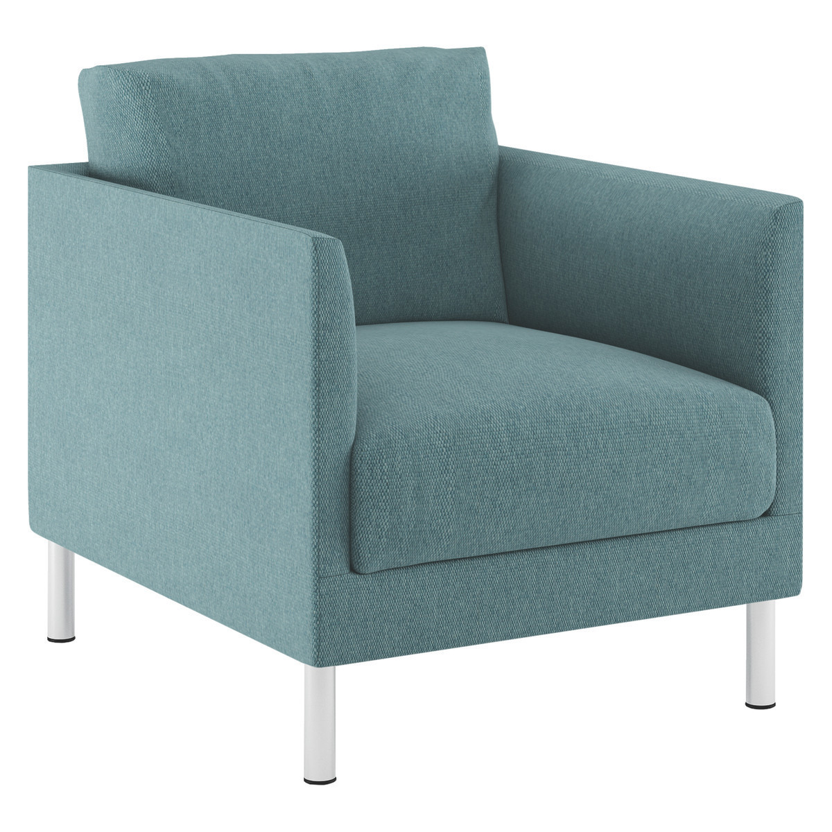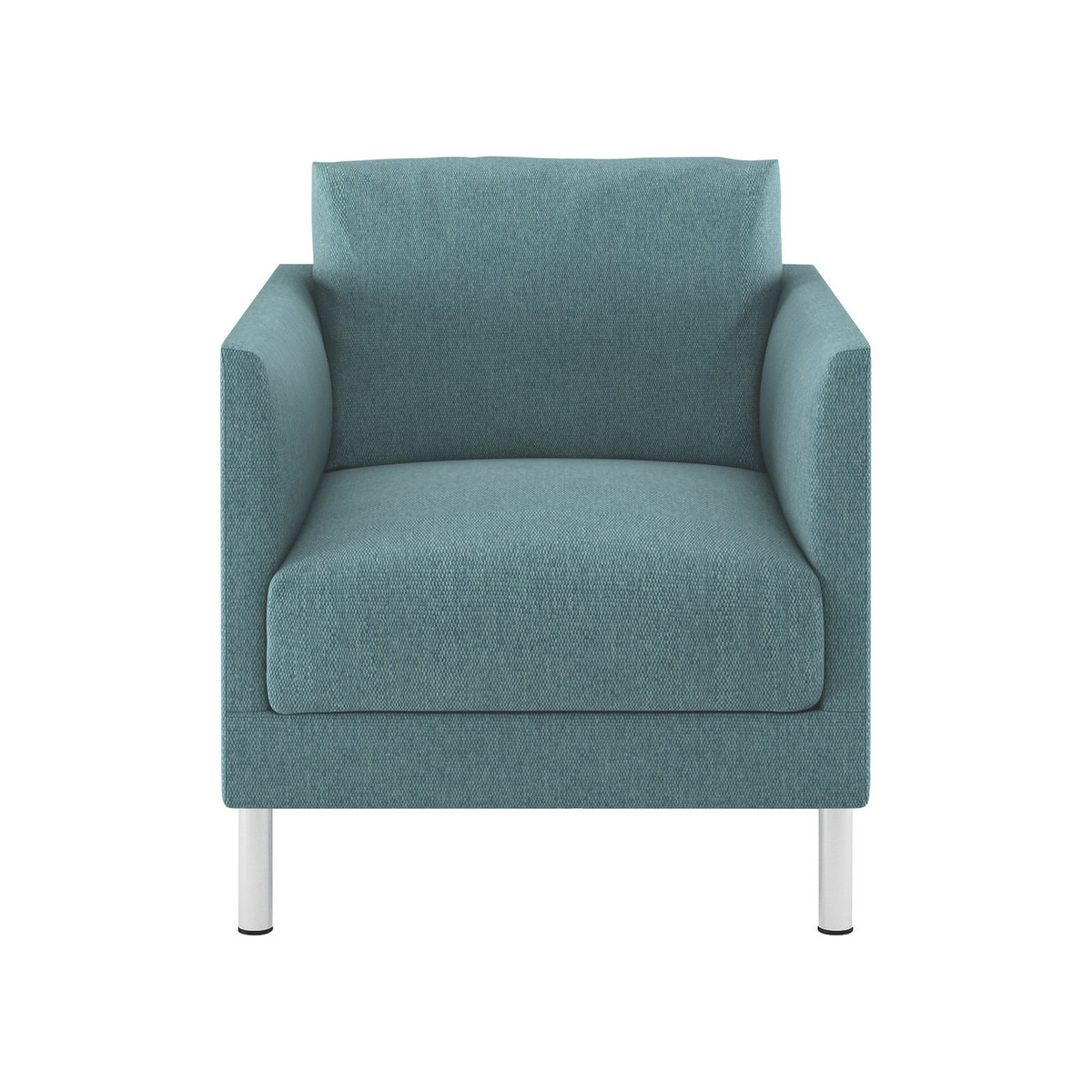 Hyde Teal Blue FaBric Armchair, Metal Legs, Blue