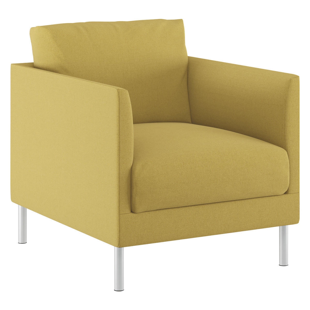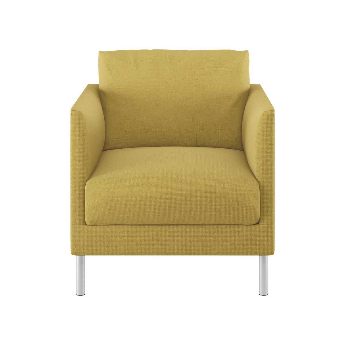 Hyde Yellow Textured Woven FaBric Armchair, Metal Leg, Yellow