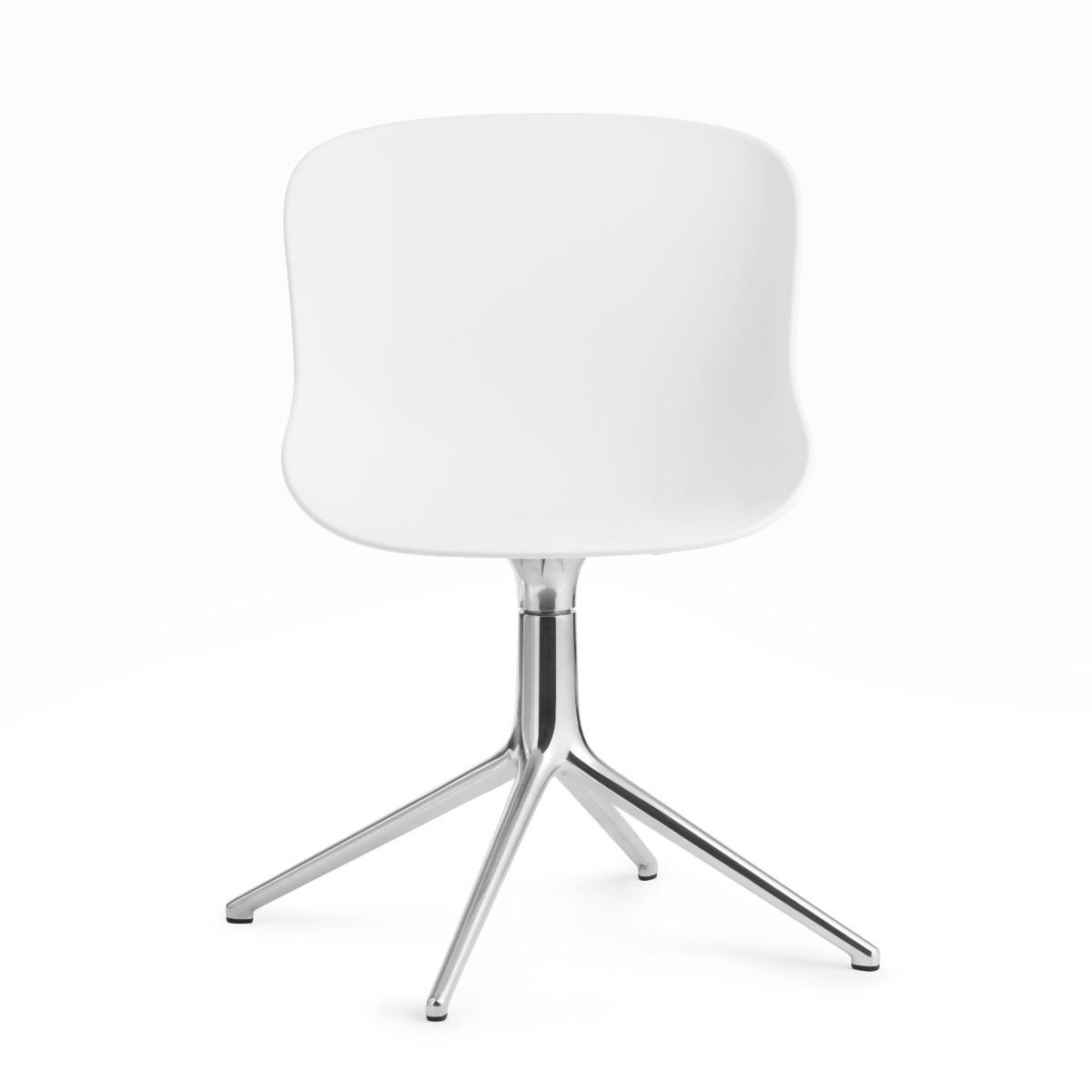 Sublime comfort. Created by Danish designer Simon Legald, the Hyg seating series stands out with its organic, generous curves. The name given to this collection comes from the Danish "hygge" concept, which is synonymous with well-being, comfort, safety and warmth: everything we find in the DNA of Hyg. This swivel chair consists of a large polypropylene shell. Its ample shape has been designed to provide optimal seating comfort. With its lines both soft and solid, the shell envelops you comfortably while supporting the back perfectly. The 4-legged base is made of aluminium. Simon Legald explains: “Those times when we sit together, launch into a conversation and share a meal - for me, this is where the hygge feeling really reaches its climax. So it seemed natural that the Hyg range should provide a setting for such moments. The feeling of hygge is not just related to visual design experience – it’s the overall sensual experience. Much effort has gone into sculpting the shape to provide rest and support to the human body, to provide it with optimal seating comfort. ”.