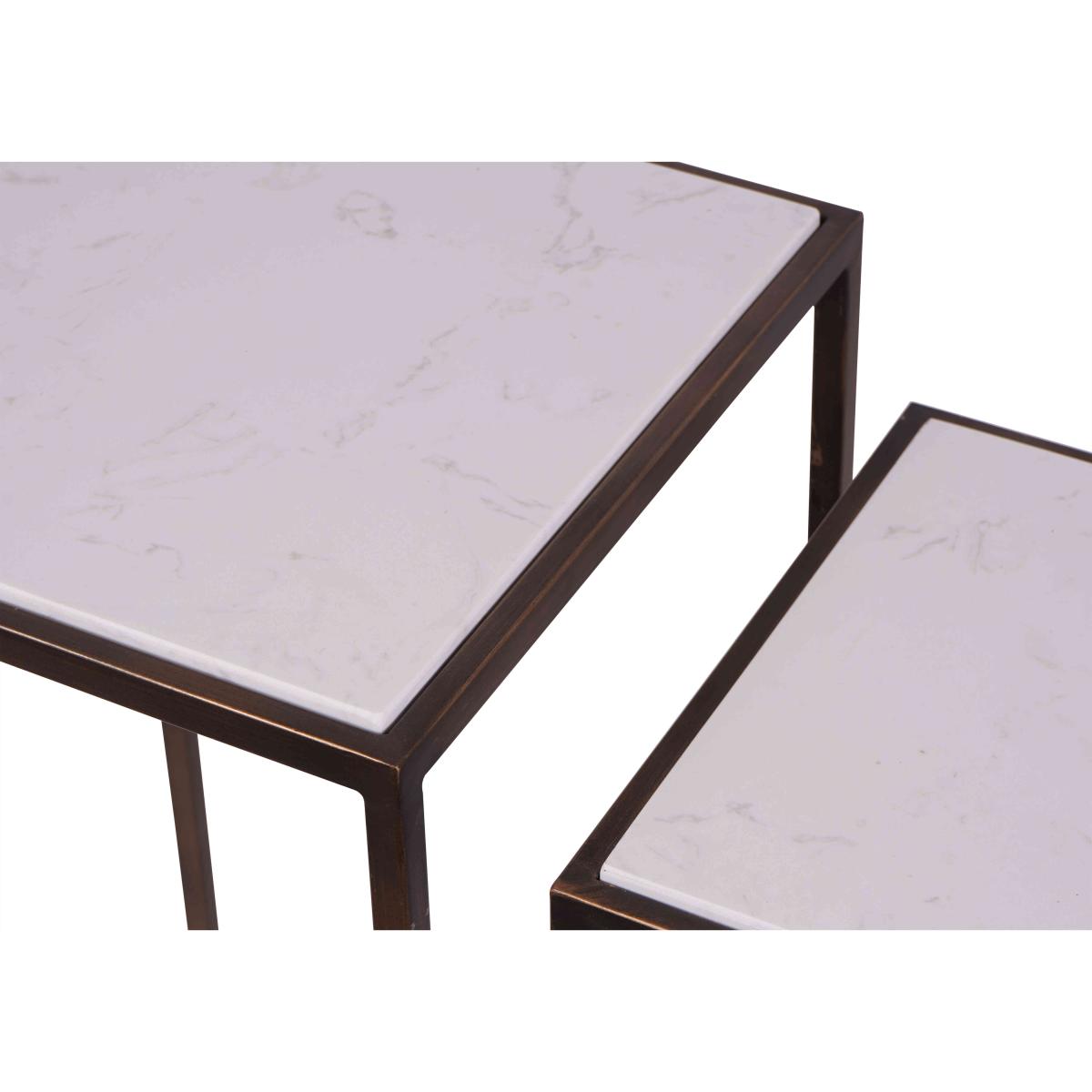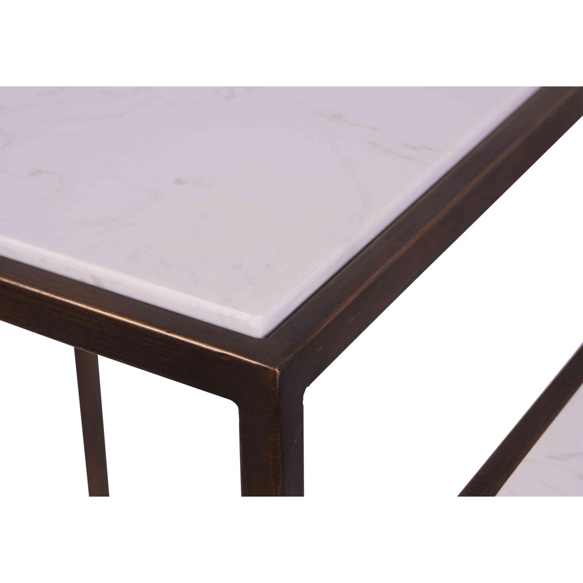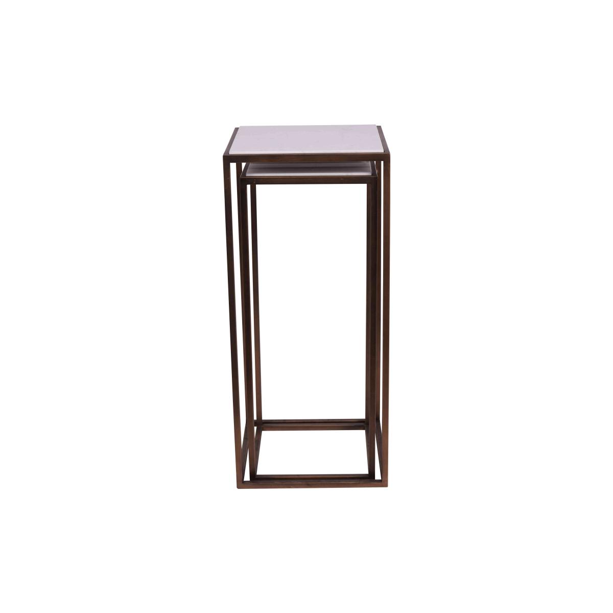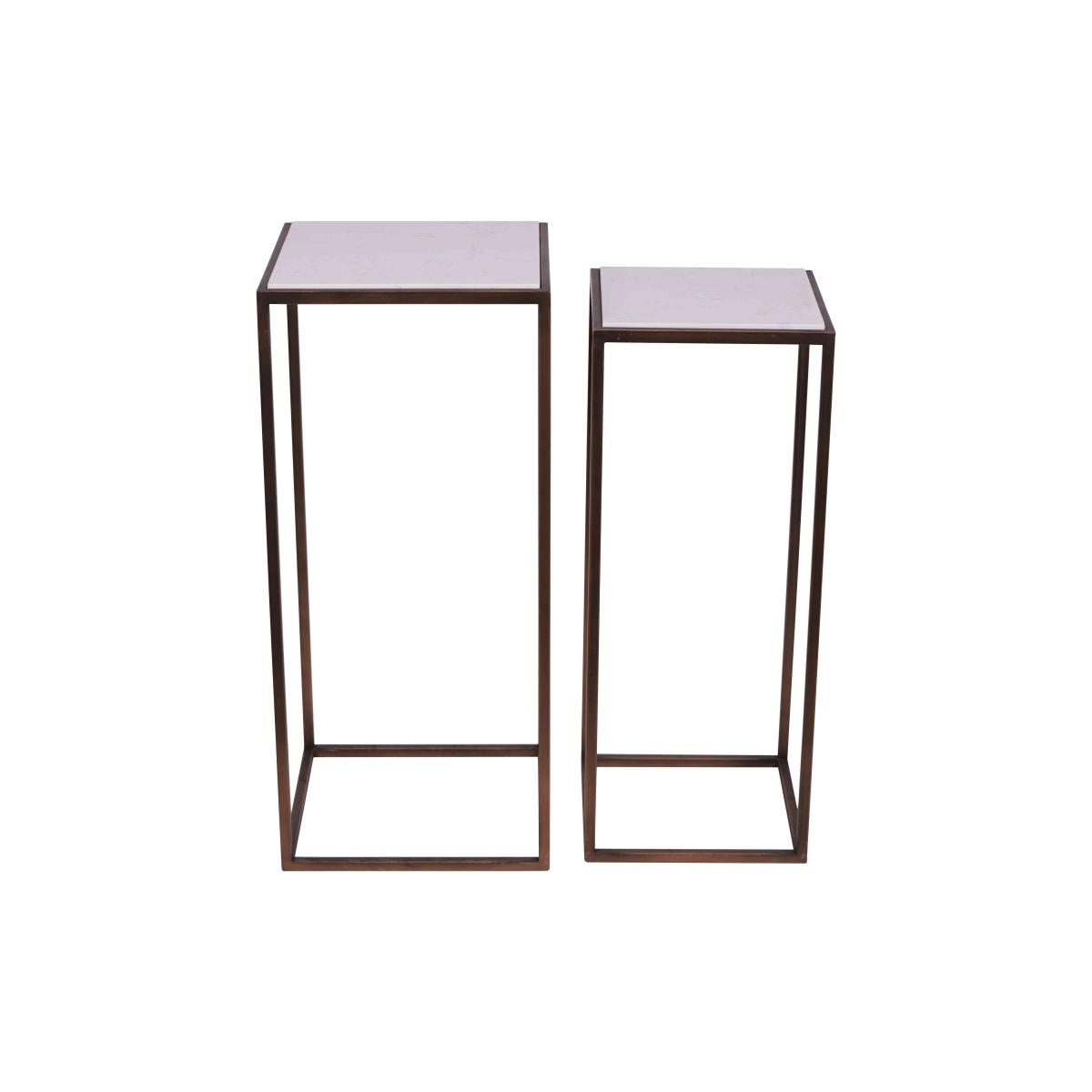 This stunning set of 2 Hylas antique copper nesting side tables is the ideal accompaniment to a contemporary interior. Why you'll love it These striking nesting side tables are made to impress. They’re the perfect resting place for a drink or book. Topped with ceramic with a subtle marble-effect finish. Perfect for adding extra flair and practicality to your space. What you need to know Set of 2 tables. Frames made from iron. Tops made from ceramic. We recommend using coasters and placemats at all times. For indoor use only.