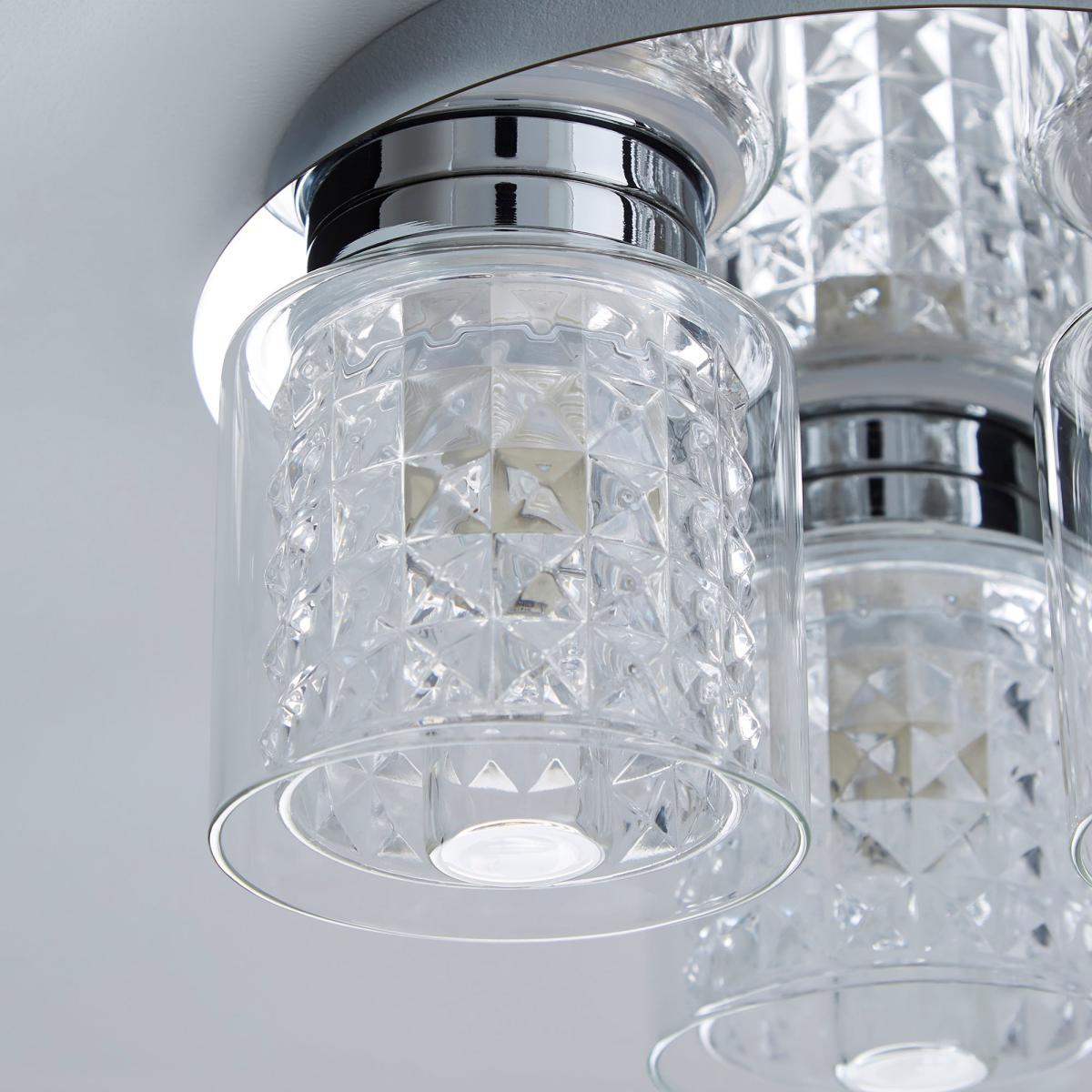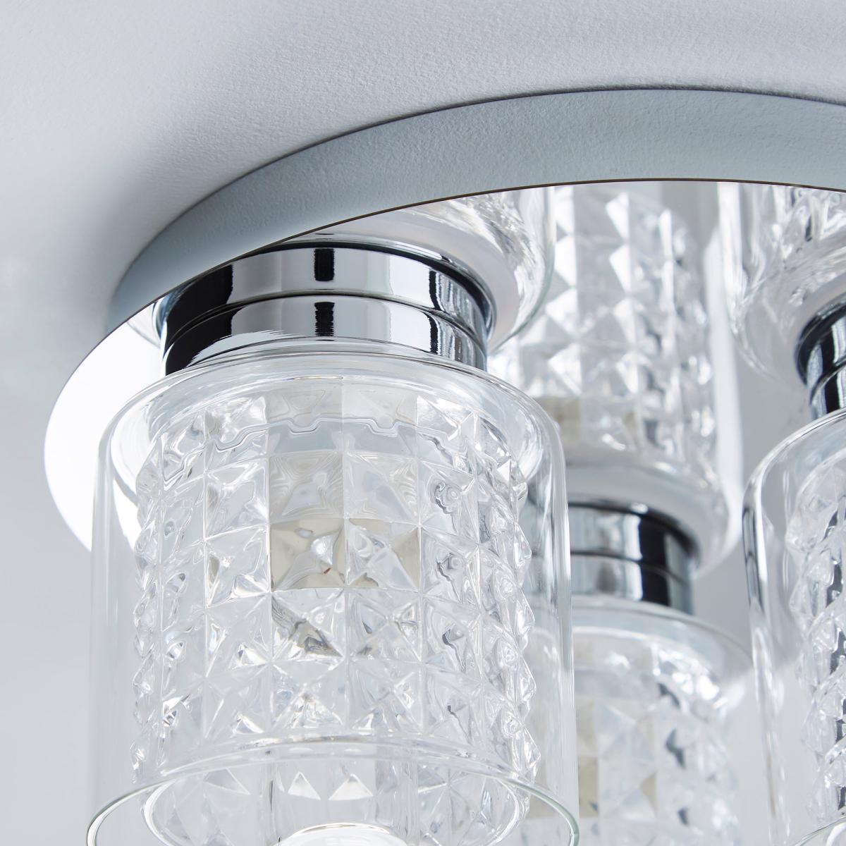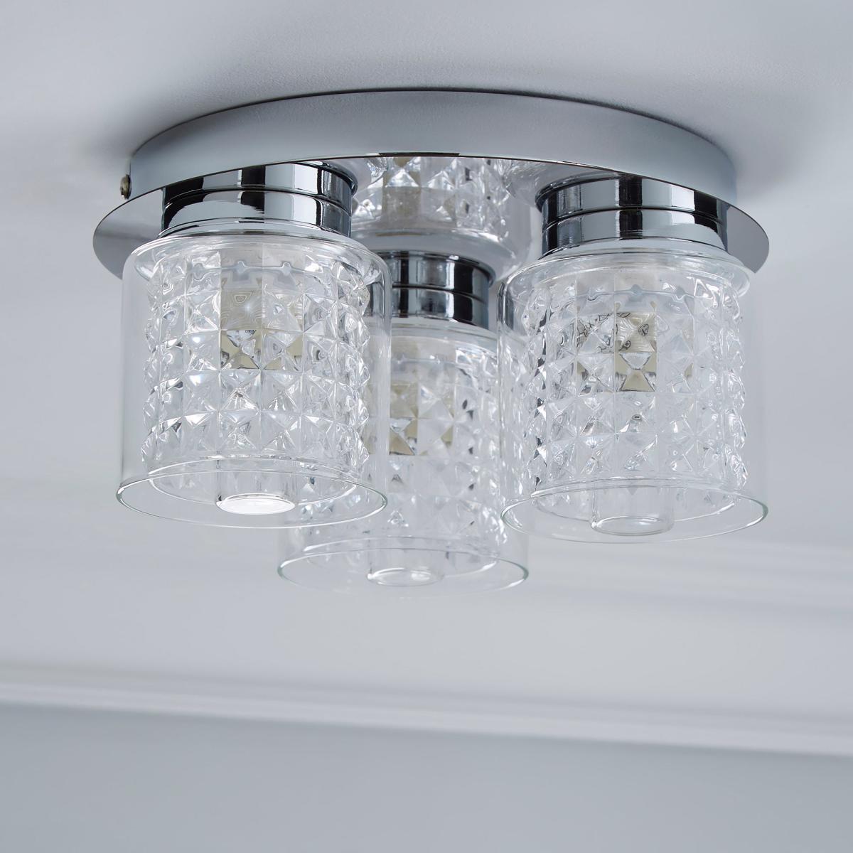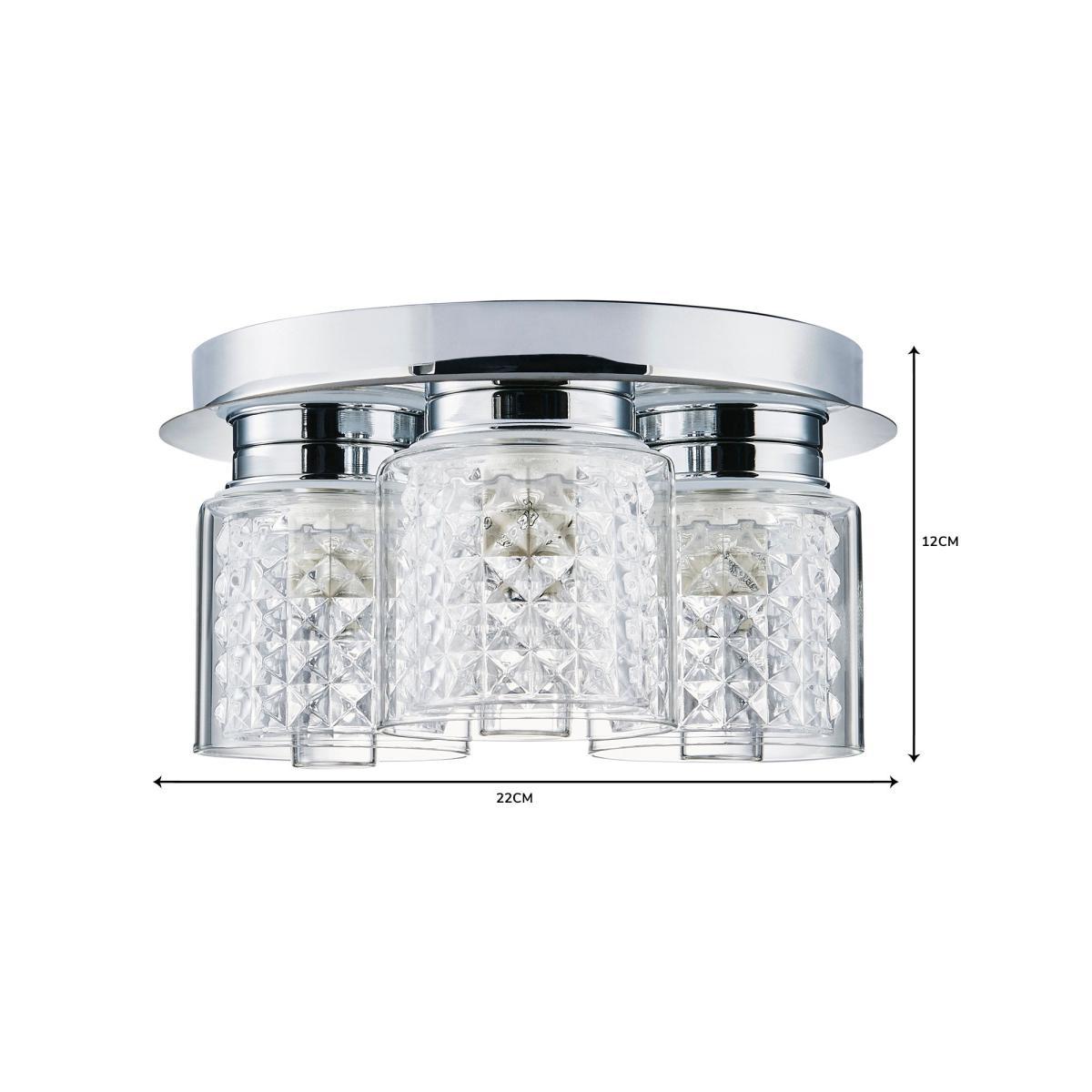 Add a touch of style to your bathroom with this chrome finished ceiling light. Made with durable materials, this flush light features three decorative glass shades and dimmable option. This light is suitable for use in the bathroom within Zone 2 (IP Rating 44).