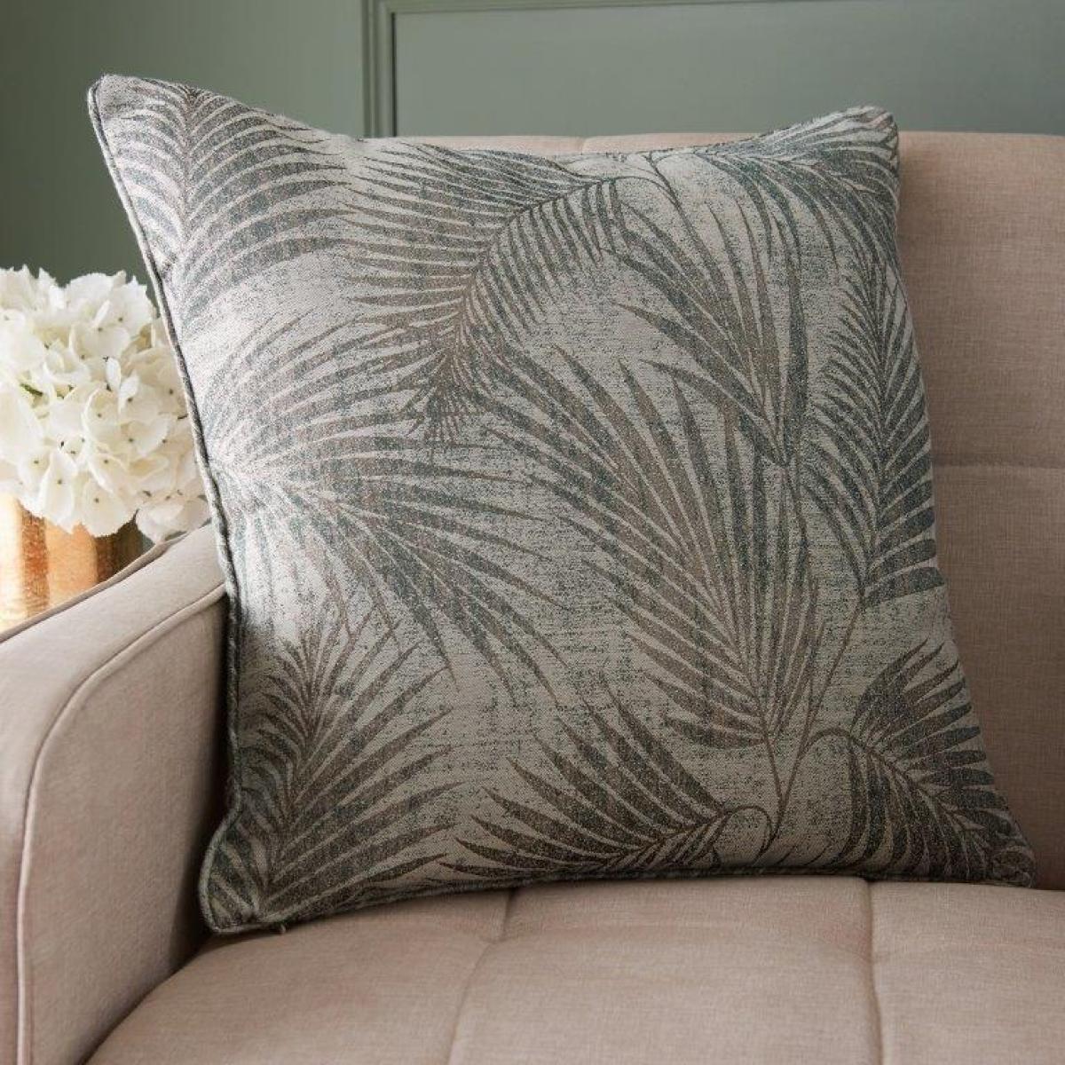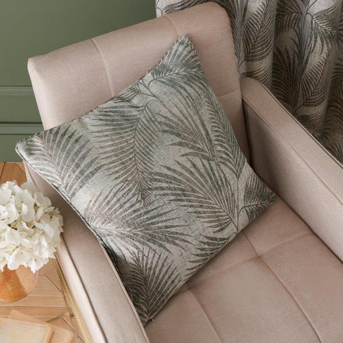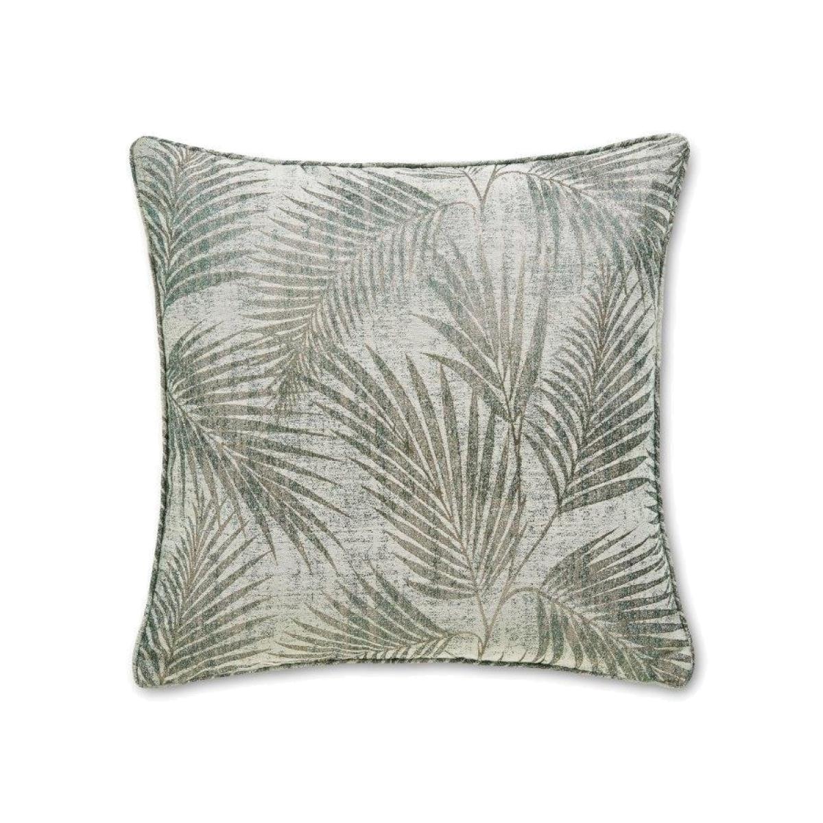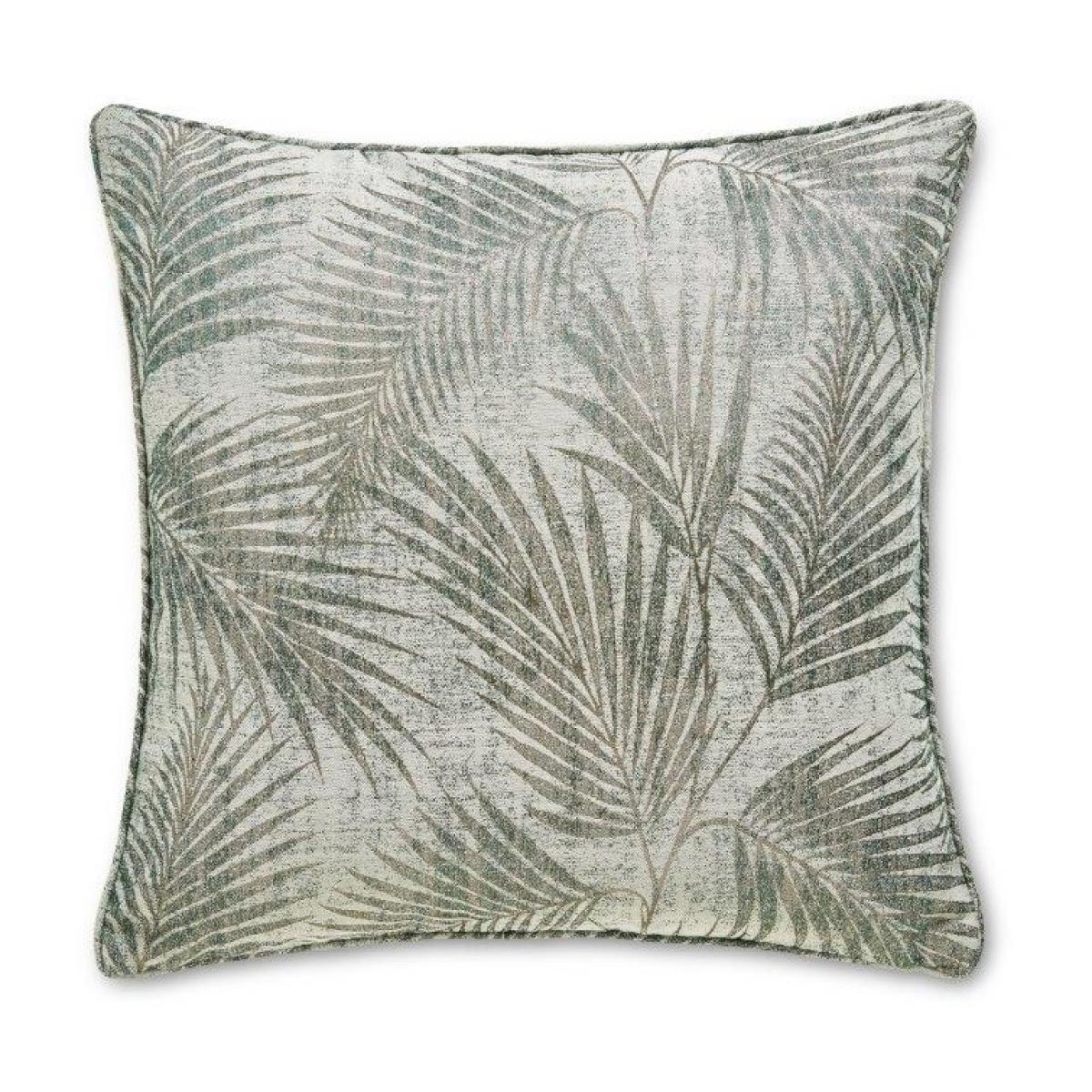 Elevate your living space with a touch of the tropics. Layered palm leaves with glistening metallic yarn detailing sit against a woven texture backdrop. Metallic Yarn Finish, Zip Closure, Piped Edge Detailing 100% Polyester. One 50x50cm cushion cover with a feather inner. Wase Before Use. Machine Wash at 30 Degrees, Tumble Dry Safe Ethically sourced overseas and made to quality and human-ecological safety standards, in accordance with STANDARD 100 by OEKO-TEX. The HYPERION INTERIORS collection of bed linens, curtains and cushions has been lovingly curated, bringing together the best designs, innovative techniques and beautiful fabrics that are made to the highest standards ensuring lasting quality and a touch of luxury for years to come. All screens vary in colour reproduction and whilst every effort has been made to display the colour as accurately as possible it is for guidance only.